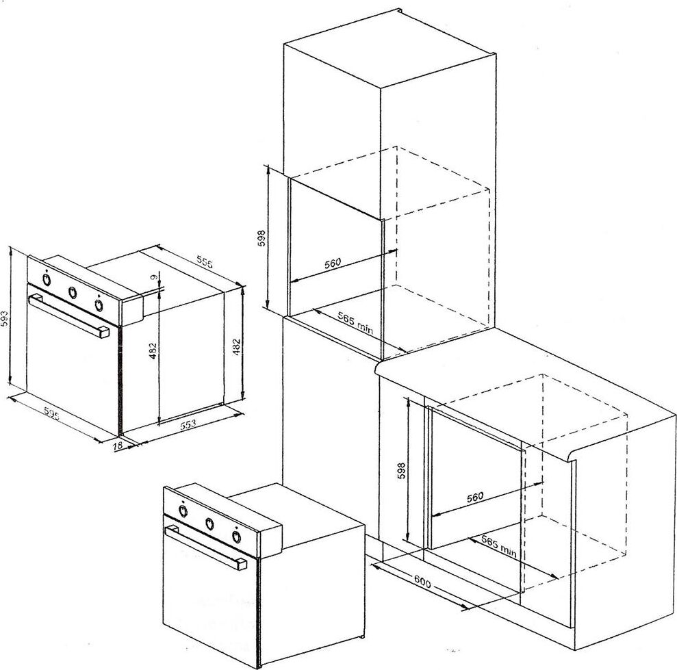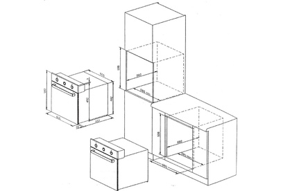 (ВхШхГ) 57х59.5x59.5 см.Цвет корпуса серебристый. Объём 60 л.Макс. температура 250 °С.Режимов нагрева 9.Гриль электрич.1500 Вт. Конвекция.Переключатели утапливаемые.Таймер звуковой.Вертел.Дверца духовки откидная.Число стекол дверцы два.Подсветка камеры, вентилятор охлаждения.