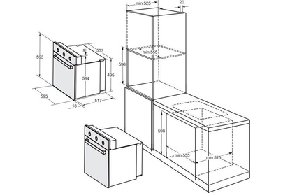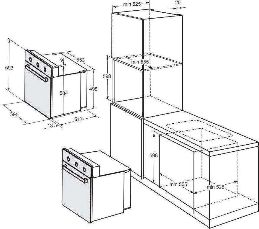 (ШхГхВ)60х52,8х60см.Цвет черный. Установка встраиваемая. Объем духовки, 50л.Управление механическое.Таймер электромеханический.Тип духовки электрическая. Гриль электрический.Вес, кг26,4.Кол-во программ4.Термостат духовки.Заземление.