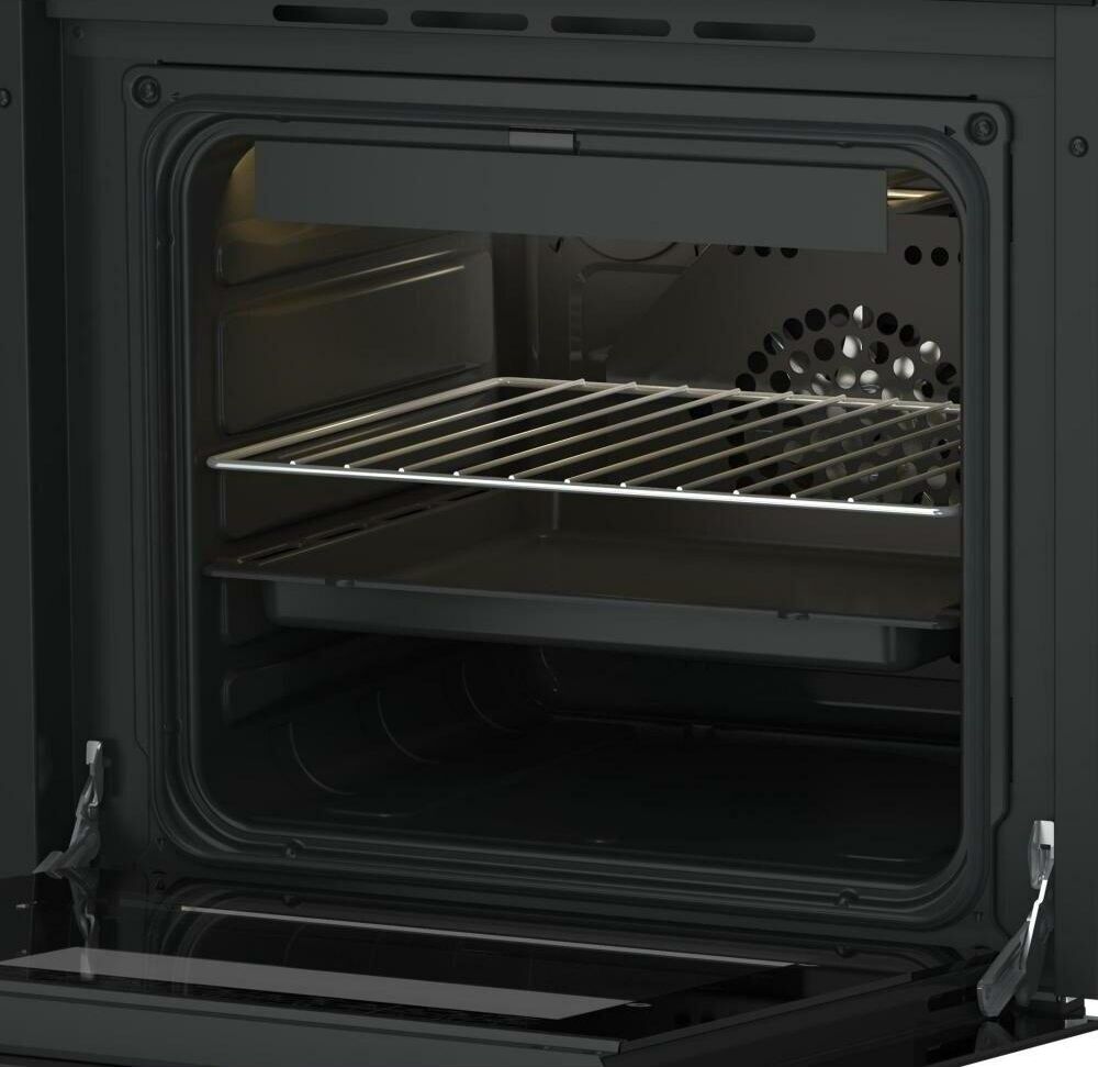 (ВхШхГ) 59,5х59,5х53,5см. Объем 50л. 9 режимов работы. Гриль. Таймер звуковой. Подсветка духовки. Терморегулятор. Конвектор. Заземление. Цвет белый. Режим конвекции способствует равномерному распределению горячего воздуха, что сокращает время запекания и позволяет готовить несколько блюд одновременно. Двойное остекление дверцы духовки удерживает тепло внутри в течение всего процесса приготовления пищи. Внутреннее покрытие из эмали облегчает чистку стенок духовки.