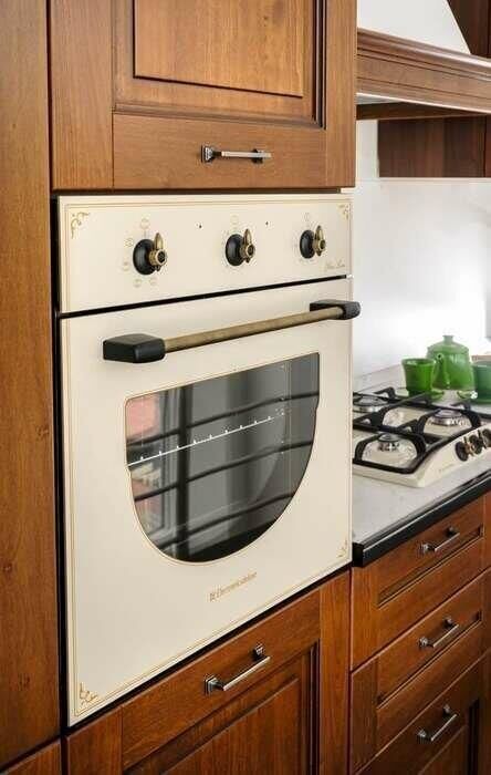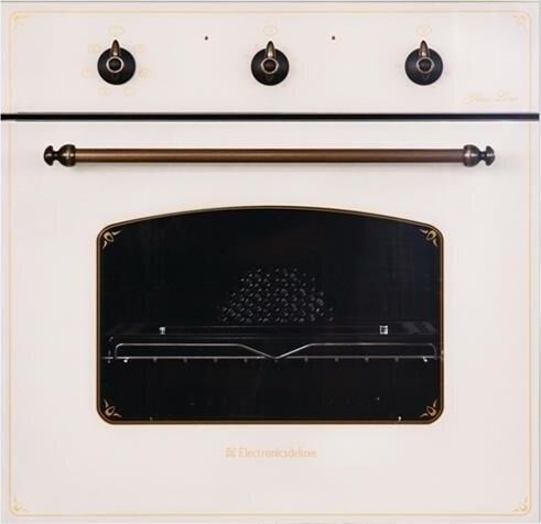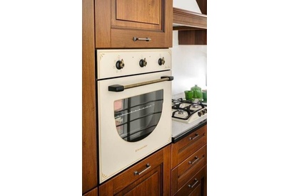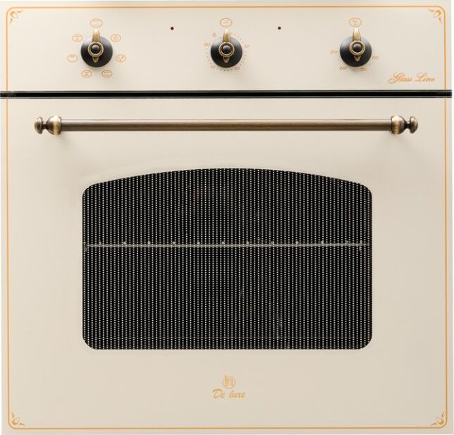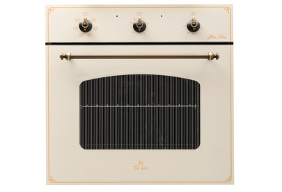 стеклянный фасад цвета топленое молоко (кантри), ручки управления цвета "состаренная латунь", механический таймер с отключением, конвекция, гриль, 6 режимов работы, автомат.охлаждение корпуса, подсветка, объем 58 л. Размер продукта (Выс*шир*гл)- 590*596*600 мм.