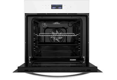Духовой шкаф Maunfeld EOEC.566TW выполнен в сочетании белого цвета и серебристой фурнитуры. Он впишется как в современный, так и в классический интерьер. Для встраивания устройства понадобится ниша размерами 60×56,4×56 см, при этом вес модели — 28,5 кг. Внутренняя камера объемом 56 л позволит приготовить любые продукты, от пирогов до мясных блюд. Управление — электронное, с помощью сенсоров. На дисплее отображается текущее время и настройки прибора. Благодаря таймеру вы можете заниматься своими делами, пока техника доводит продукт до готовности. Когда процесс завершится, вы услышите звуковой сигнал. Духовой шкаф Маунфилд EOEC.566TW оснащен шестью режимами работы. Это сочетание верхнего и нижнего нагрева, нижний нагрев отдельно, гриль, а также различные варианты конвекции. Благодаря потокам воздуха блюда готовятся быстрее, а значит экономится электроэнергия. Также прибор может создать подходящий тепловой режим для приготовления дрожжевого теста, поддержания блюд в теплом виде и разморозки продуктов.