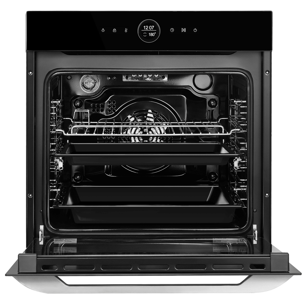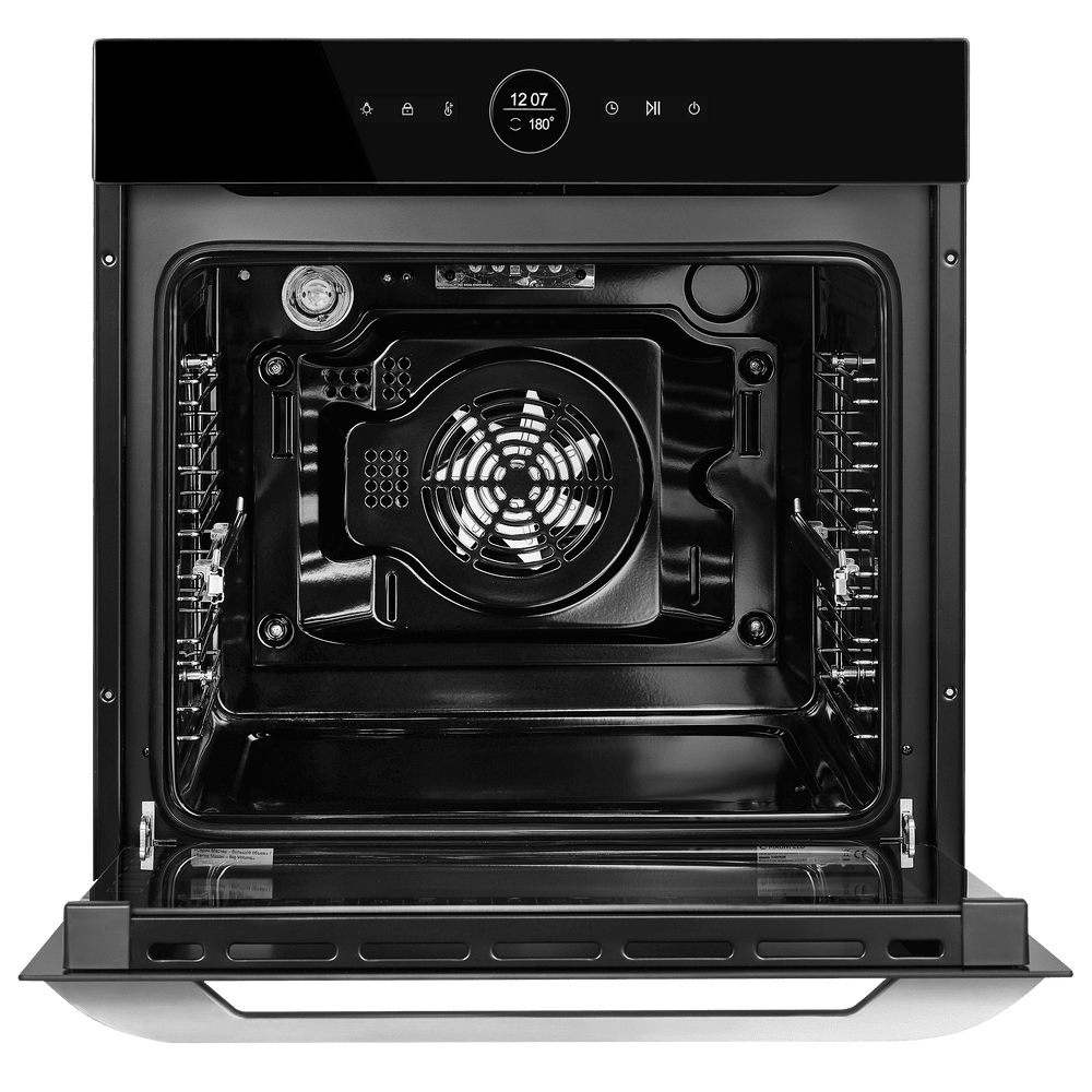 Духовой шкаф Maunfeld EOEH7616B представляет собой высококачественное электрическое устройство. Изделие отличается своей вместительностью, объем рабочей камеры составляет 76 литров. Дизайн шкафа выполнен в стиле Модерн, что делает его универсальным и подходящим для большинства интерьеров. Черный цвет корпуса и фурнитуры придает устройству строгости и солидности. Управление шкафом осуществляется с помощью электронного сенсорного программатора, на котором расположен цифровой дисплей. На дисплее отображается время, а также можно установить таймер и отложенный старт. Духовой шкаф Maunfeld EOEH7616B обладает 14 режимами работы, включая верхний и нижний нагрев, конвекцию, гриль, воздушную сушку, аэрофритюр и предварительный разогрев. Кроме того, есть функции размораживания и поддержания блюд в теплом состоянии. Внутренняя поверхность камеры покрыта эмалью легкой очистки, что облегчает уход за устройством. Для безопасности использования предусмотрена функция холодного фронта и блокировка панели управлен