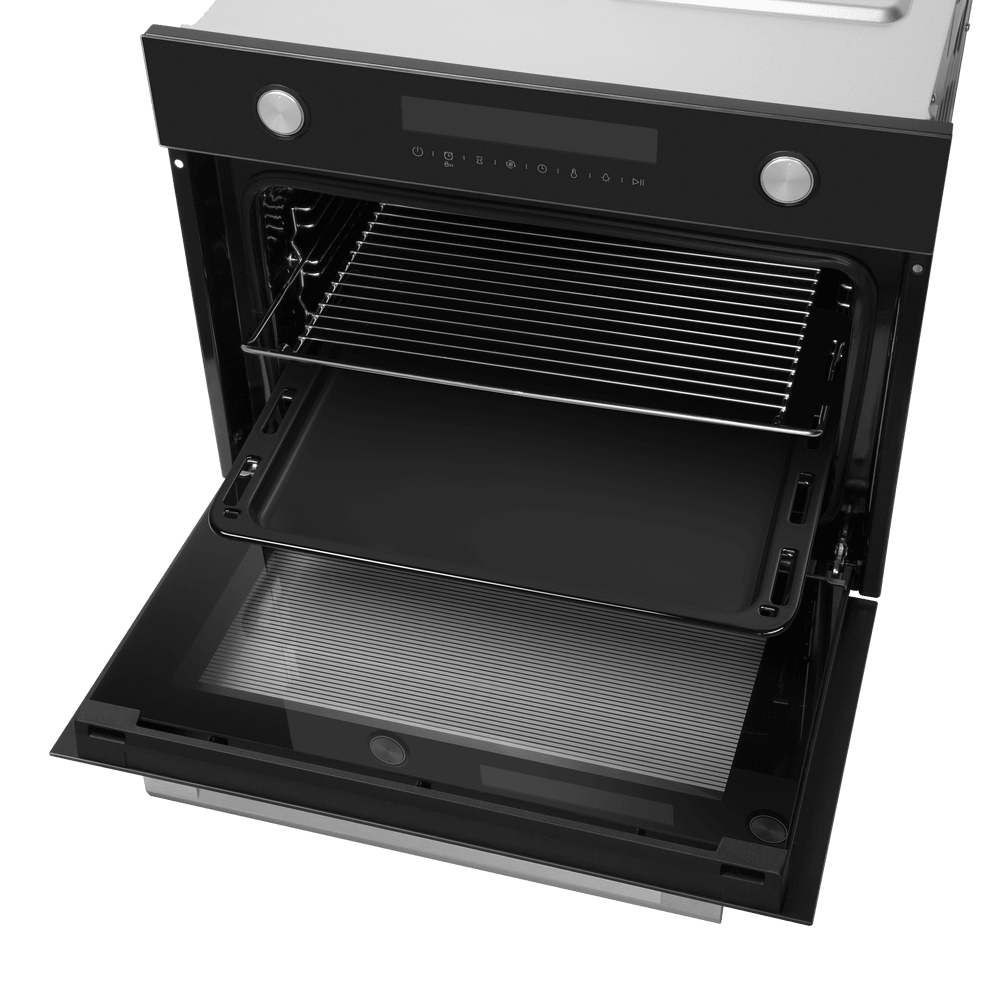 Духовой шкаф Maunfeld MCMO5013MDGB — это функциональное и современное оснащение вашей кухни. Встраиваемая конструкция обеспечивает значительную экономию места. Для размещения техники понадобится ниша размерами 46×60×55 см, при этом объем рабочего пространства камеры составит 50 л. Вы сможете приготовить пирог или торт, запечь мясо и овощи. Основной цвет прибора черный, фурнитура — оттенка «нержавеющая сталь». Такое сочетание подойдет к любому современному интерьеру. Вымыть внутреннюю поверхность камеры легко благодаря специальной эмали легкой очистки. К тому же модель имеет опцию очищения паром AquaClean. Духовой шкаф Маунфилд MCMO5013MDGB оснащен электронным управлением с помощью сенсоров и утапливаемых поворотных элементов. Дисплей показывает время и активные настройки устройства. Благодаря таймеру ваше блюдо не подгорит, а звуковой сигнал даст понять, что приготовление закончено. Тринадцать режимов готовки позволяют сделать ваш стол максимально разнообразным. Разные настройки нагрева и конвекц