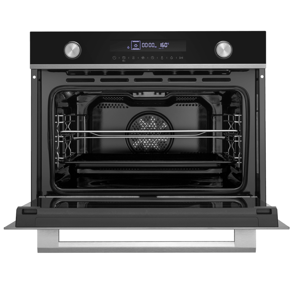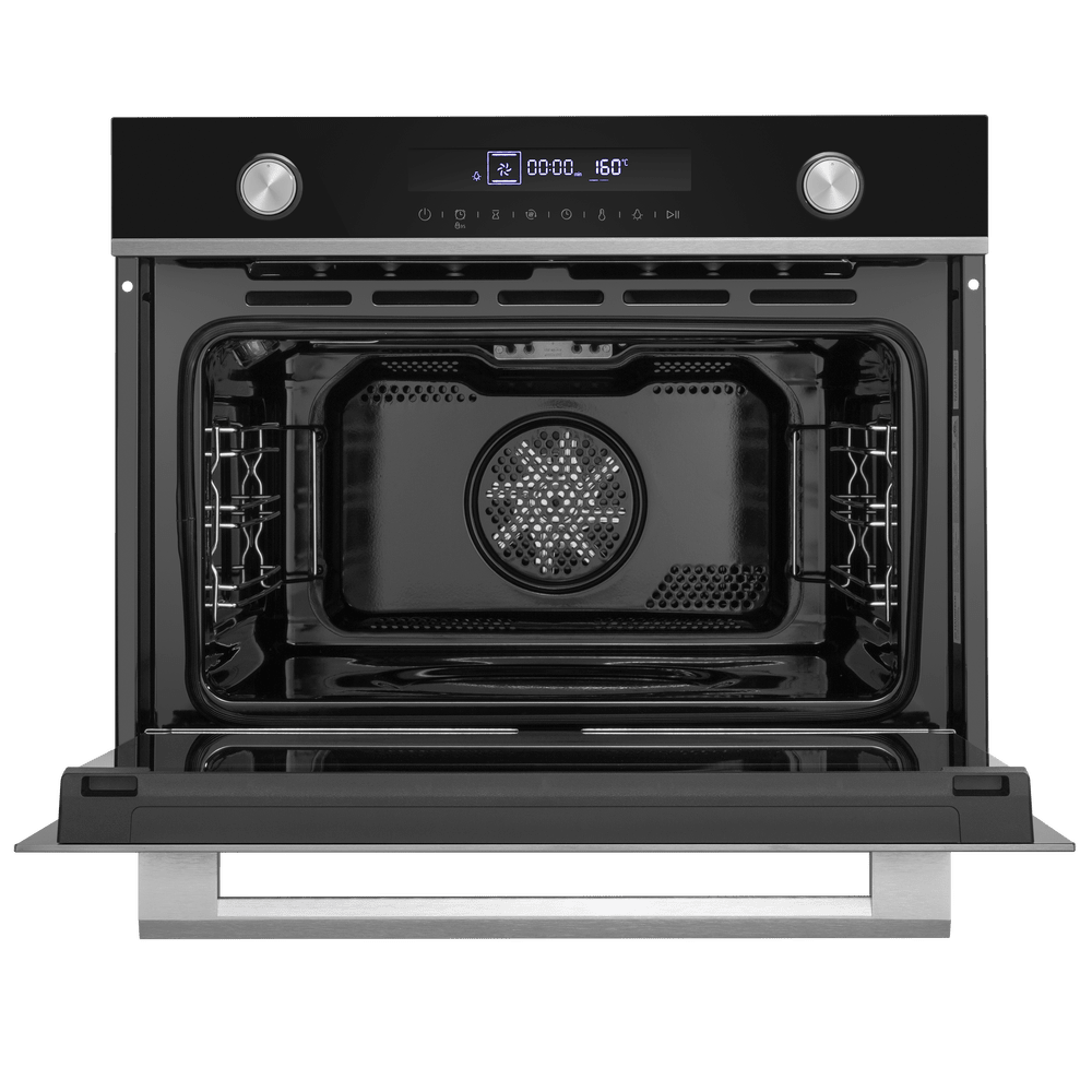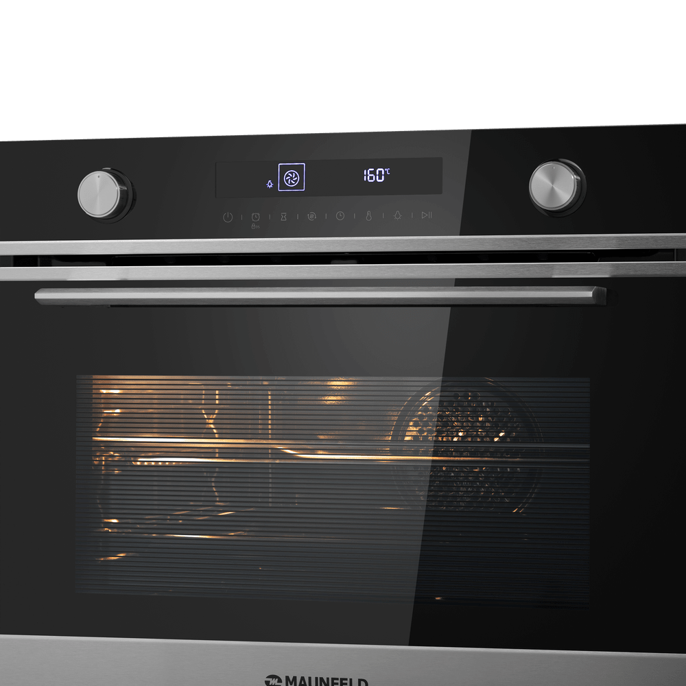 Электрический духовой шкаф Maunfeld MCMO5013MDS в цвете "нержавеющая сталь" оснащен электронной панелью управления с сенсорным дисплеем и утапливаемыми поворотными переключателями. Стильный дизайн прибора поможет вписать его в современный интерьер кухни. Очистка паром AquaClean позволит не использовать химические чистящие средства, что обеспечит экологичное и комфортное использование устройства. В комплект входят: стандартный противень и решетка для гриля. Ключевые преимущества: Защита от детей Сенсорный дисплей Очистка паром AquaClean