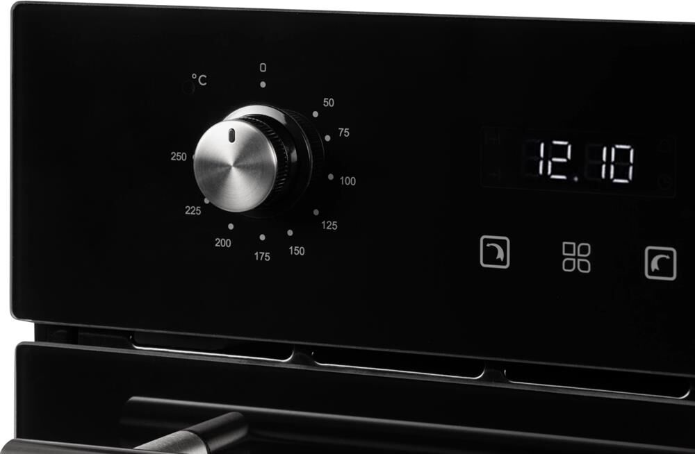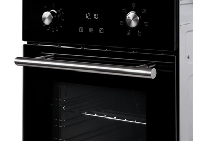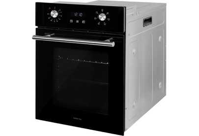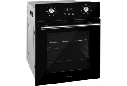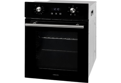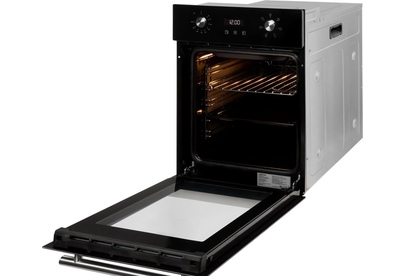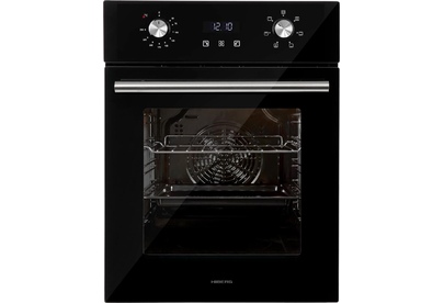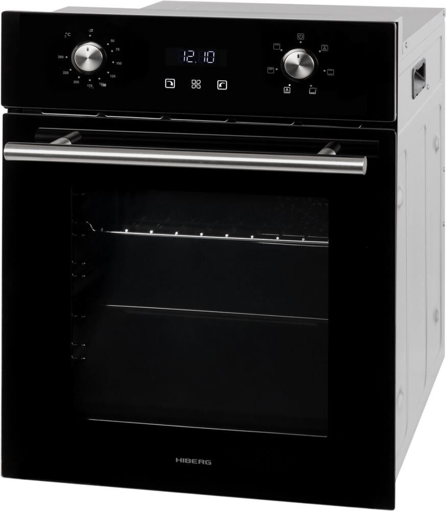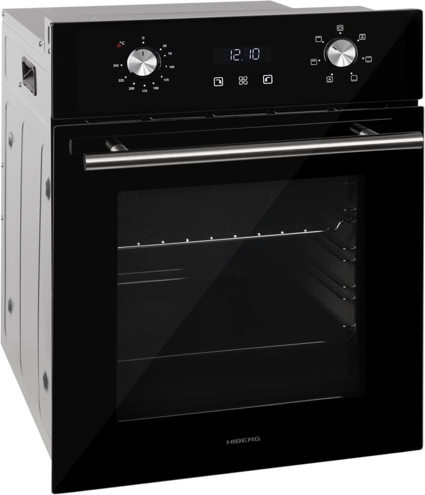 ШхГхВ: 450*565*595мм; электрическая; 50 л; 6+1 режимов; подсветка; конвекция; гриль; Дисплей; таймер сенсорный; хромированные направляющие, съемное внутреннее стекло дверцы,система охлаждения духовки, противень, решетка, фасад: черное стекло; ручки: металл