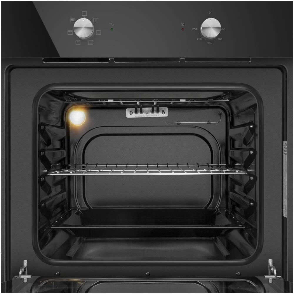Тип духовки: электрическая. Тип управления: независимое. Переключатели: поворотные. Мощность подключения: 2300. Объем духовки: 59. Максимальная температура: 250. Класс энергоэффективности: A. Очистка духовки: традиционная. Материал внутреннего покрытия духовки: эмаль легкой очистки. Тип гриля: электрический. Количество стекол в дверце: 2. Освещение духовки: есть. Количество ламп подсветки: 1. Многофункциональная духовка: да. Количество программ духовки: 6. Открывание дверцы: вниз. Вес (нетто): 28. Габариты упаковки (ед) ДхШхВ: 0.65x0.59x0.65. Вес упаковки (ед): 31. Страна производства: Китай. Подключение к электросети: кабель без вилки. Гарантия: 36 мес.. Размеры ниши для встраивания (ШхГхВ): 60 x 58 x 60 см. Размеры (ШхГхВ): 59.5 х 54.5 х 59 см. Цвет: черный. Особенности конструкции: полностью стеклянная внутренняя поверхность дверцы духовки. Режимы работы: гриль. Размеры (ШxГxВ): 59.5 х 54.5 х 59 см; ниша 60 x 58 x 60 см. Класс энергоэффективности: A. Духовка: электрическая, 59 л, эмаль легкой очистки, 2300