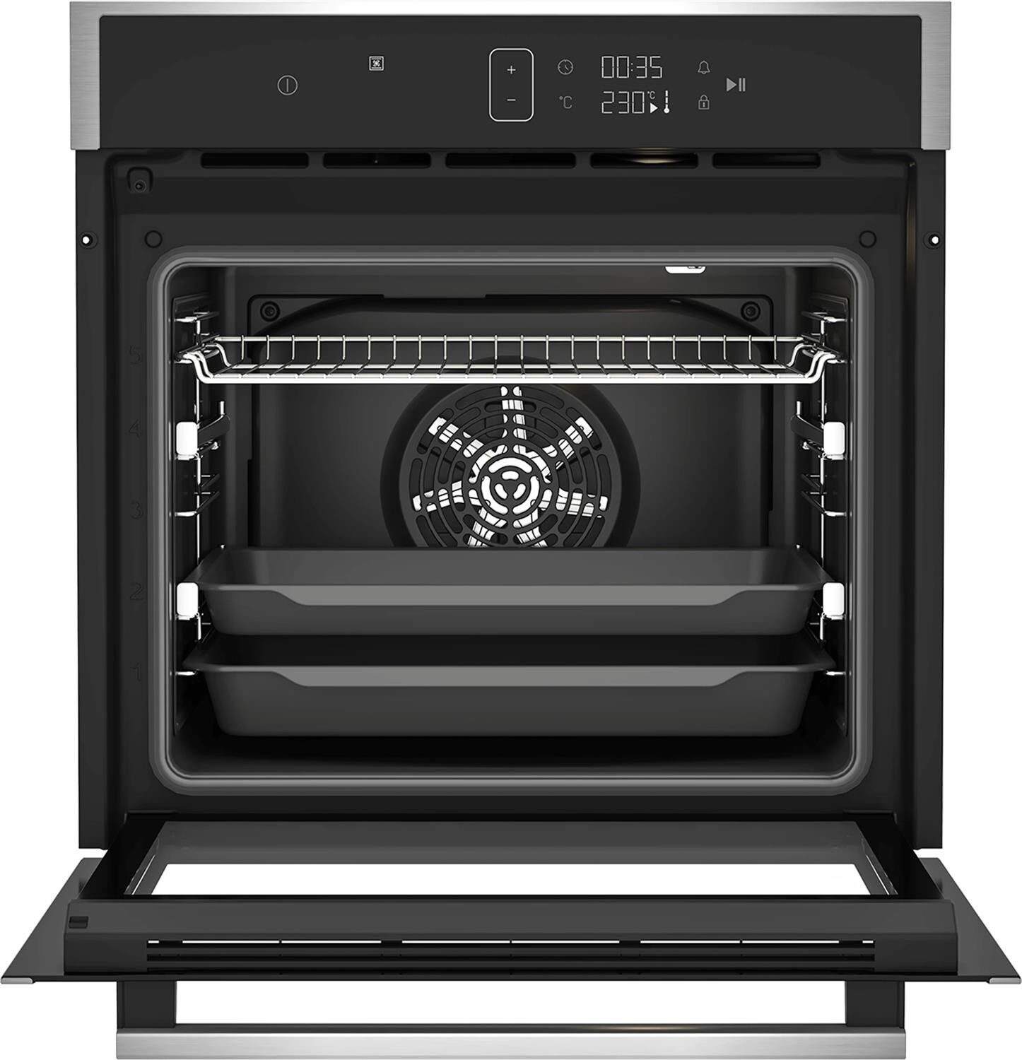 Электрический духовой шкаф; 13 программ; дисплей; полностью сенсорная панель управления; плавное закрытие и открытие дверцы; каталитическая очистка; телескопические направляющие на двух уровнях; объем - 72л.; 3 стекла дверцы; 1 решетка; 1 противень; 1 глубокий противень; цвет - нержавеющая сталь
