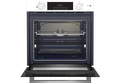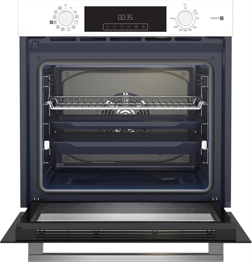 Электрический духовой шкаф; 12 режимов; AirFry; Приготовление с паром; дисплей; панель управления из стекла; утапливаемые поворотные переключатели; каталитическая очистка задней стенки; плавное закрытие дверцы; телескопические направляющие на одном уровне; объем - 72л.; 3 стекла дверцы; 1 противень; 1 глубокий противень; 1 аксессуар для AirFry; цвет - белый