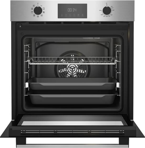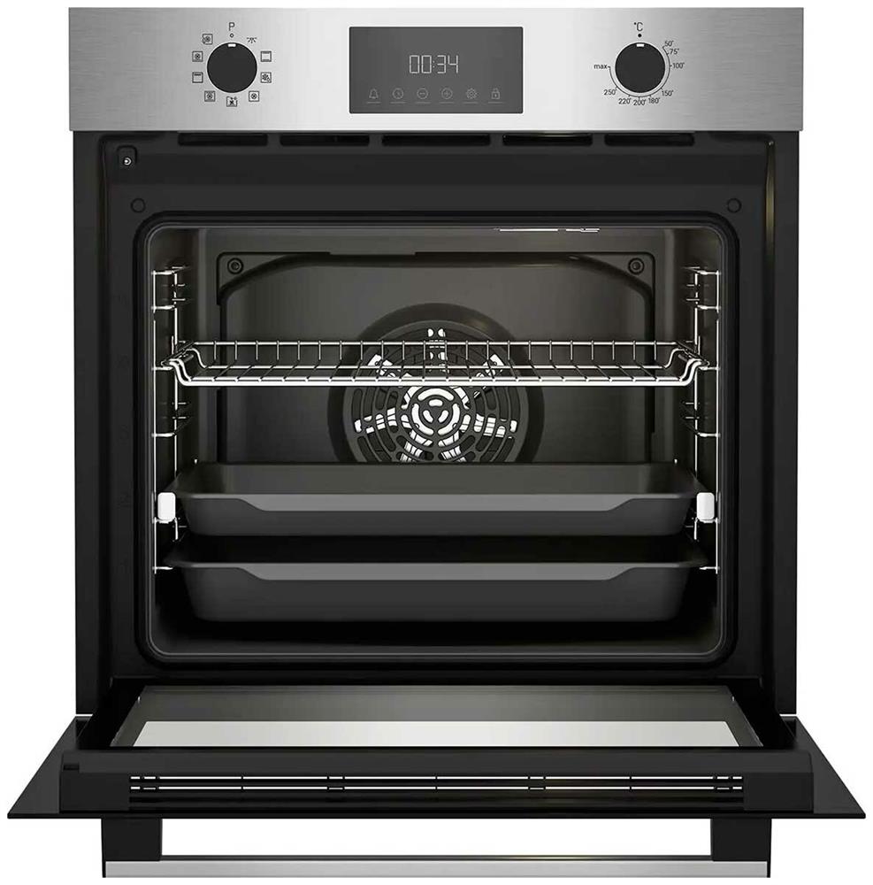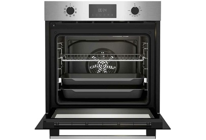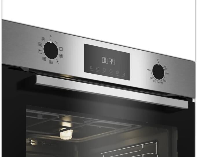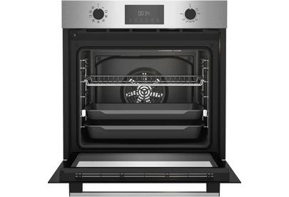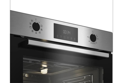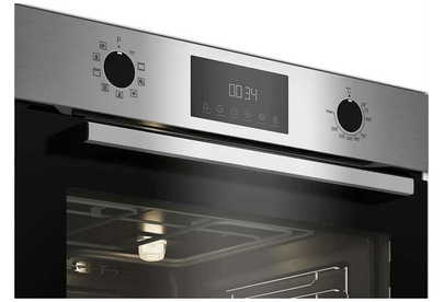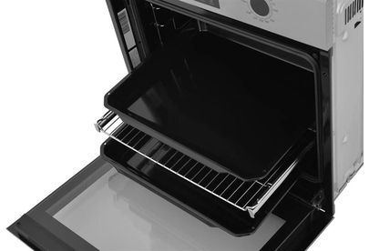 Электрический духовой шкаф; 8 программ; дисплей; утапливаемые поворотные переключатели; система очистки паром; телескопические направляющие на одном уровне; объем - 72л.; 3 стекла дверцы; 1 решетка; 1 противень; 1 глубокий противень; цвет - нержавеющая сталь