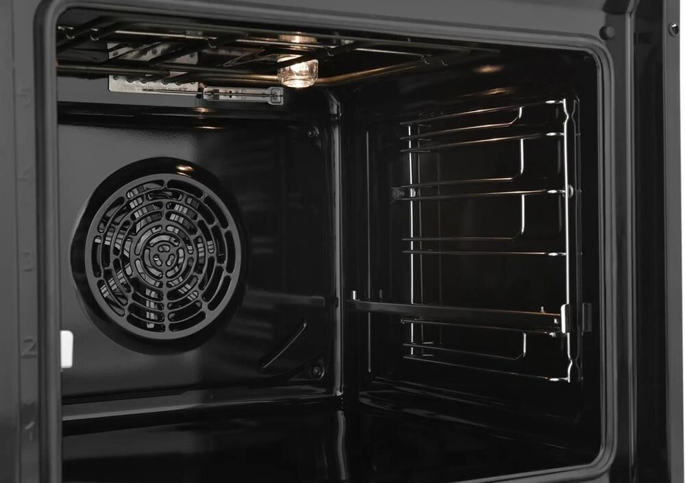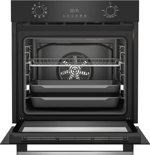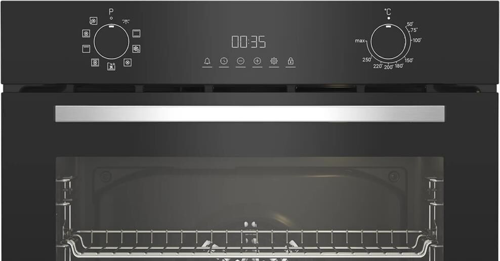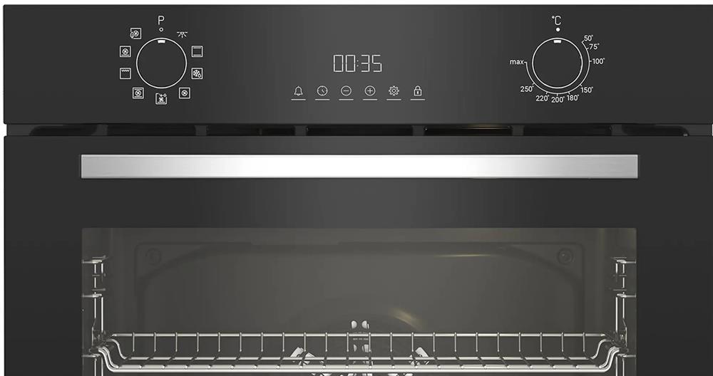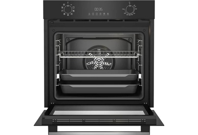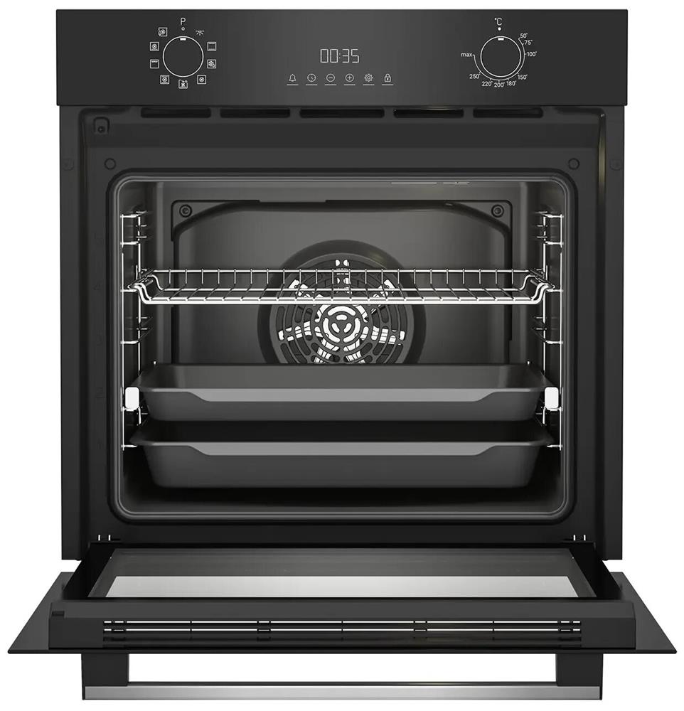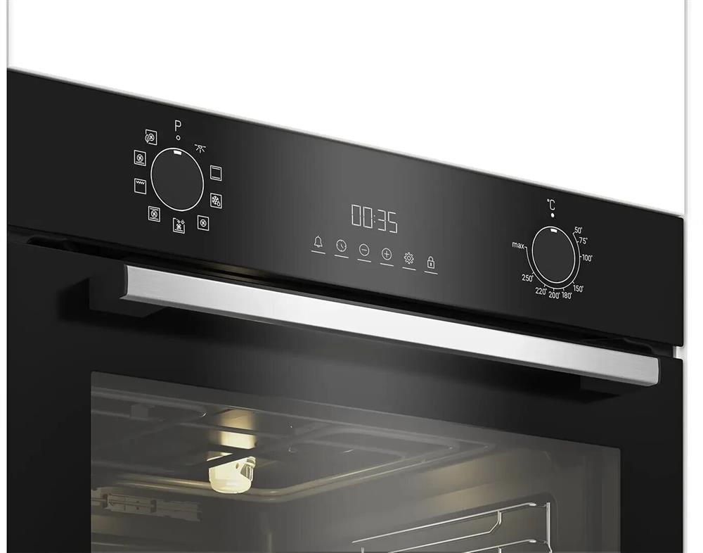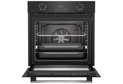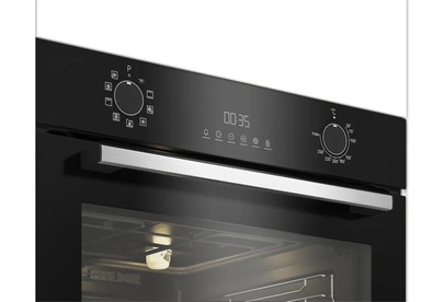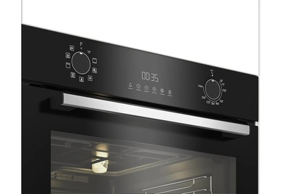 Электрический духовой шкаф; 8 программ; дисплей; утапливаемые поворотные переключатели; панель управления из стекла; система очистки паром; телескопические направляющие на одном уровне; объем - 72л.; 3 стекла дверцы; 1 решетка; 1 противень; 1 глубокий противень; цвет - черный
