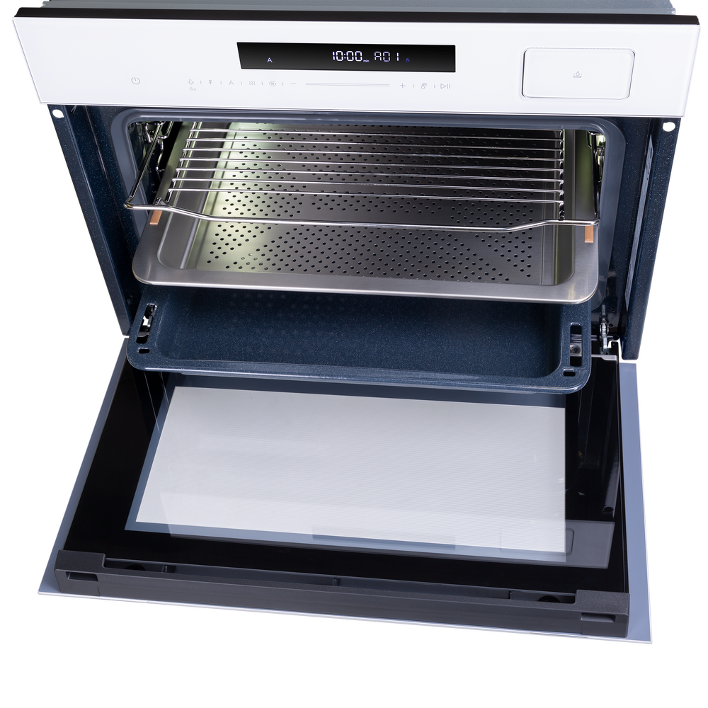 Электрический духовой шкаф Maunfeld MCMO5016STGW оснащен функцией пара, что придаст вашей выпечке хрустящую корочку, а мясным блюдам сочность и насыщенность вкуса. Класс энергопотребления А+ позволит меньше расходовать электроэнергию, что уменьшит денежные затраты. Можно заниматься своими делами не беспокоясь, что еда пригорит. Таймер оповестит вас звуковым сигналом о готовности. Ключевые преимущества: Класс энергопотребления А+ Функция приготовления при помощи пара Таймер