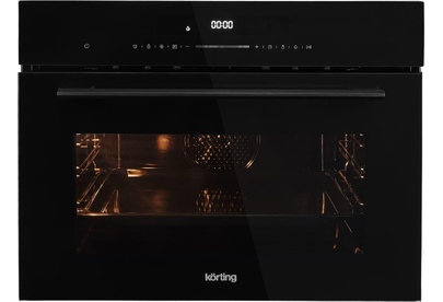 Компактный духовой шкаф, электронное сенсорное управление Full TouchControl, LЕD дисплей белого цвета Cold White, 11 режимов нагрева, электронный таймер отключения, дверца духового шкафа с тройным остеклением, подсветка внутренней камеры духовки, система автоматического охлаждения, автоматическое отключение, эмаль легкой очистки, Аксессуары: противень для выпечки, хромированная решетка, цвет: черное стекло (ручка - черная нержавеющая сталь).