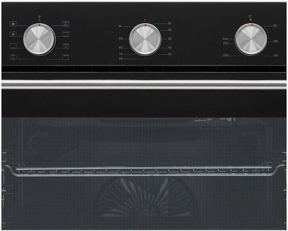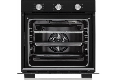 Тип духовки: электрическая. Тип управления: независимое. Переключатели: поворотные. Мощность подключения: 2475. Объем духовки: 78. Максимальная температура: 260. Класс энергоэффективности: A. Очистка духовки: традиционная. Материал внутреннего покрытия духовки: эмаль легкой очистки. Вид таймера: механический. Тип гриля: электрический. Мощность гриля: 2450. Количество стекол в дверце: 2. Освещение духовки: есть. Количество ламп подсветки: 1. Многофункциональная духовка: да. Количество программ духовки: 7. Открывание дверцы: вниз. Вес (нетто): 28.82. Габариты упаковки (ед) ДхШхВ: 0.65x0.66x0.655. Вес упаковки (ед): 36. Подключение к электросети: кабель без вилки. Гарантия: 60 мес.. Размеры ниши для встраивания (ШхГхВ): 56 x 55 x 60 см. Размеры (ШхГхВ): 59.5 х 56.7 х 59.5 см. Цвет: черный. Функции: таймер. Режимы работы: гриль, конвекция, размораживание. Особенности конструкции: полностью стеклянная внутренняя поверхность дверцы духовки, утапливаемые переключатели. Защита: защитное отключение. Класс энергоэффект