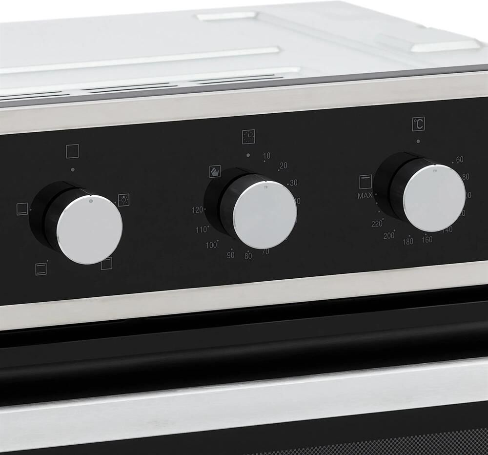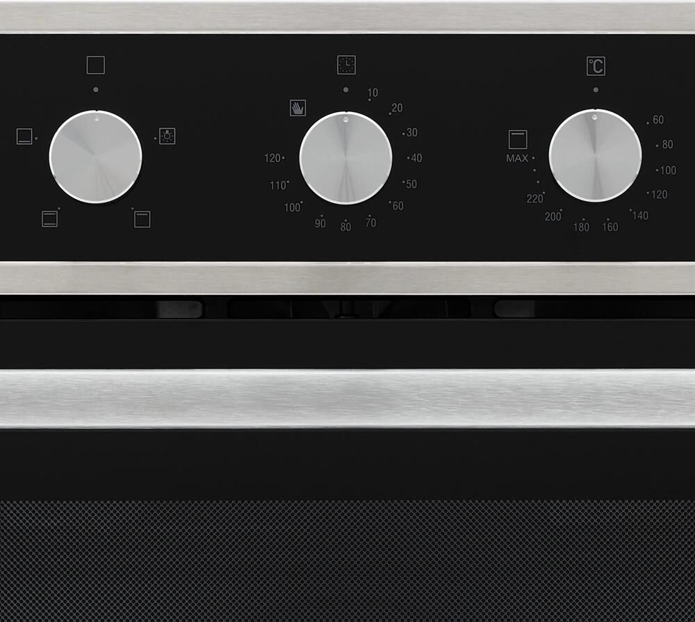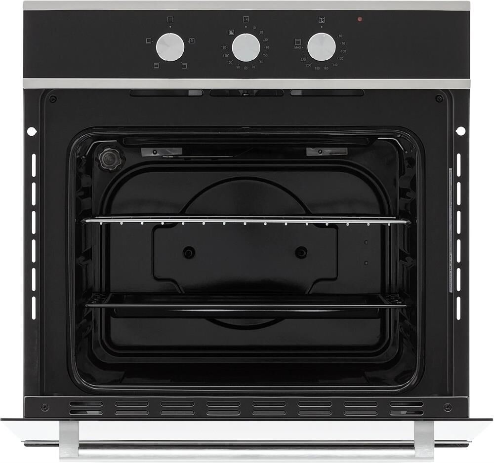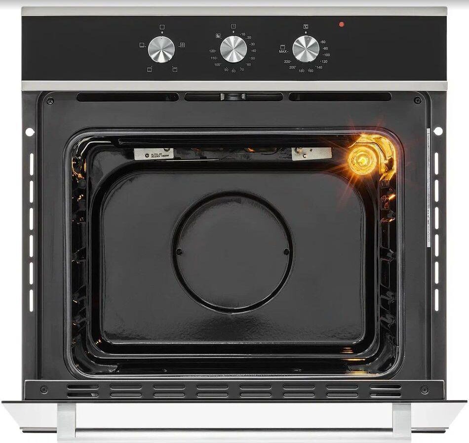 Тип духового шкафа:электрический; Система очистки:традиционная; Мощность гриля, кВт:1,22; Цвет:Черный + Нержавеющая сталь; Направляющие:стандартные формованные, 5 уровней; Тангенциальное охлаждение:да; Стандартный противень:да; Дверца духовки:Разборная, съёмная; Число стекол дверцы:3; Материалы:закленное стекло + металл; Код ТНВЭД:8516608000; Линейка:RACIO; Срок службы:7 лет; Преимущества:* Тройное остекление дверцы Cool Touch Glass * Функция гриля * Эмаль легкой очистки Easy Clean; Ширина упаковки (мм):645; Высота упаковки (мм):660; Глубина упаковки (мм):585; Общий объем, л:68; Встраиваемая часть (В*Ш*Г), мм:577*555*500; Ниша для встраивания (В*Ш*Г), мм:600*558*550 min; Лицевая панель (В*Ш*Г), мм:594*594*21; Управление:3 поворотных переключателя; Количество режимов нагрева:3 + освещение; Таймер:электромеханический, 120 мин; Класс энергопотребления:A; Защита от перегрева:да; Максимальная мощность потребления, кВт:2,2; Освещение:1 галоген, 25 Вт; Тип гриля:электрический; Решетка для гриля:да; Дополнительная ко