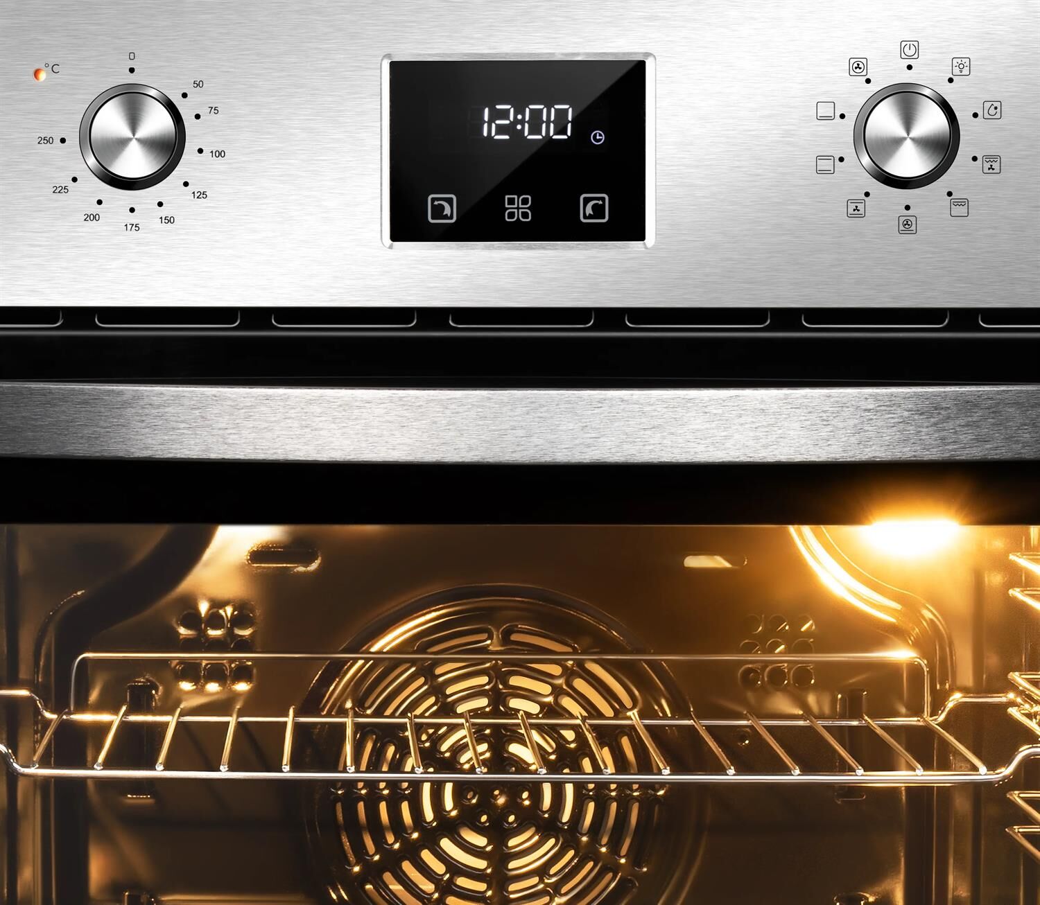 Мощность 2800 Вт Ширина 60 см Объем 70 литров Дисплей Механическое/электронное управление Утапливаемые ручки управления 9 режима приготовления -Верхний нагрев + Нижний нагрев -Нижний нагрев -Двойной гриль -Двойной гриль + Конвекция -Конвекция + Верхний нагрев + Нижний нагрев -Конвекция + Кольцевой нагрев -Конвекция + Кольцевой нагрев + Нижний нагрев -Конвекция + Нижний нагрев -Разморозка 2х-слойная стеклянная дверь Таймер Cъемное внутреннее стекло для удобства очистки Хромированные направляющие Подсветка Максимальная температура 250 °С Длина шнура 120 см Аксессуары: 1 решетка, 1 противень Напряжение 220-240 В, 50-60 Гц Гарантия 2 года