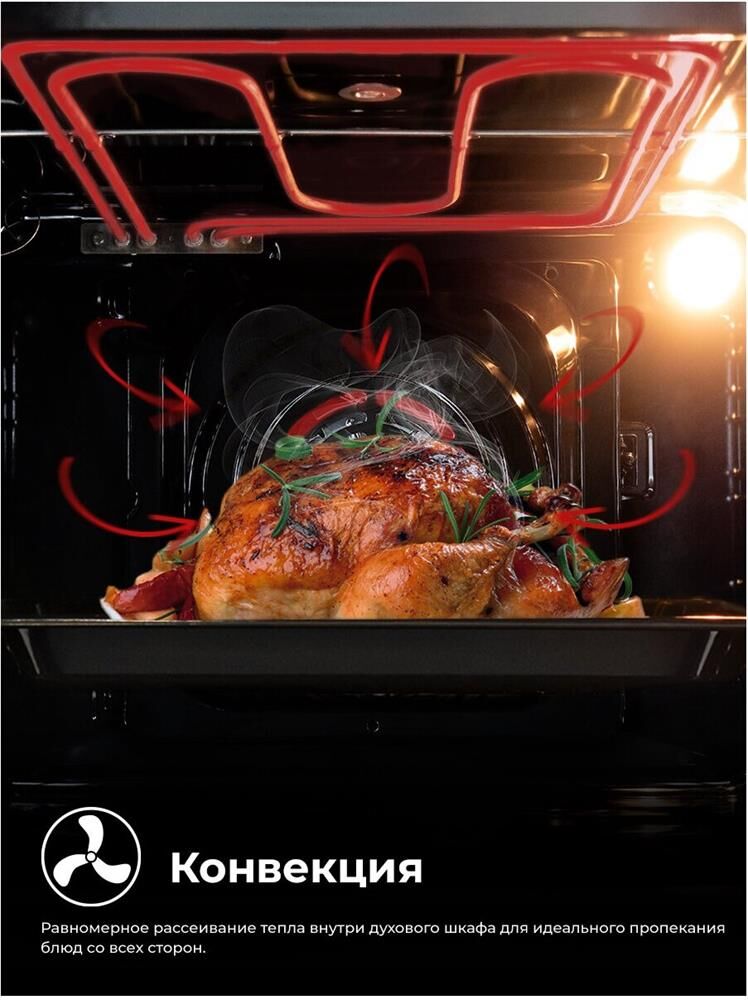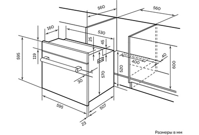 Тип духовки: электрическая. Тип управления: независимое. Переключатели: поворотные. Мощность подключения: 2900. Объем духовки: 60. Максимальная температура: 250. Класс энергоэффективности: A. Очистка духовки: традиционная. Материал внутреннего покрытия духовки: эмаль легкой очистки. Вид таймера: механический. Тип гриля: электрический. Количество стекол в дверце: 3. Освещение духовки: есть. Тип освещения: лампа накаливания. Количество ламп подсветки: 1. Мощность ламп подсветки: 25. Многофункциональная духовка: да. Количество программ духовки: 7. Открывание дверцы: вниз. Длина кабеля: 1. Вес (нетто): 29. Габариты упаковки (ед) ДхШхВ: 0.635x0.58x0.645. Вес упаковки (ед): 31. Страна производства: Китай. Подключение к электросети: кабель с вилкой. Гарантия: 36 мес.. Размеры ниши для встраивания (ШхГхВ): 56 x 56 x 60 см. Размеры (ШхГхВ): 59.5 х 53 х 59.5 см. Цвет: черный. Функции: таймер. Режимы работы: гриль, конвекция, размораживание. Индикация: звуковая индикация. Тип очистки: традиционная. Функции: гриль, конве