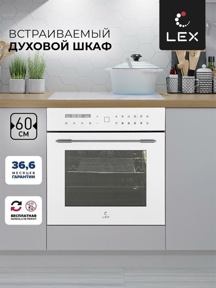 Шкаф духовой электрический LEX Духовой шкаф электрический EDS 101 WH, белый/нержавеющая сталь