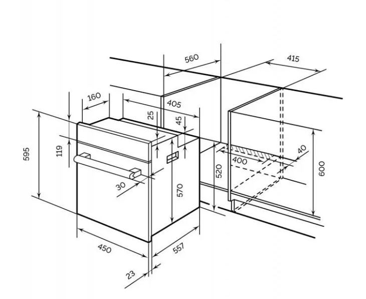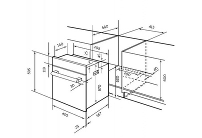 Размер устройства (ВхШхГ) 595х450х580 мм мм * Размер для встраивания (ВхШхГ) 600х415х560 мм * Вес в упаковке / без упаковки 28,5 кг. / 27,5 кг.. * Объём 58 л * Цвет Inox * Отделка Нержавеющая сталь, Стекло * Максимальная температура 250 °С * Класс энергопотребления А * Режимы работы: Верхний нагрев, Нижний нагрев, Подсветка, Традиционный * Дверца духовки Съемная. Внутреннее стекло легко вынимается * Стекло дверцы двойное *