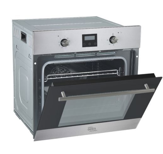 (ВхШхГ) 59.5х59.4х55.5 см.Цвет нерж.сталь.Тип управления Сенсорный+механический.Объем духового шкафа, л 68.Максимальная температура 250 °С. Класс энергопотребления A.Таймер.Дисплей .Часы.Вентилятор охлаждения. Конвекция.Гриль.Комплект поставки Электрический духовой шкаф, решетка, 2 противня, документация.