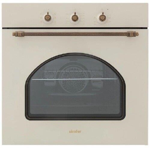 ВСТРАИВАЕМАЯ ЭЛЕКТРИЧЕСКАЯ ДУХОВКА • Класс энергоэффективности А • Объем камеры духовки: 58л. • Мультифункциональная духовка • Количество режимов работы: 8 • Электрический термостат • Механический таймер на 90 мин. • Управление: поворотные переключатели • Очистка камеры духовки: эмаль ле?гкои? очистки чёрного цвета, паровая очистка • Количество стёкол дверцы: 2 • Внутреннее съёмное стекло лёгкой очистки • Фронтальное освещение духовки • Рельефные направляющие • Комплектация: стандартный противень с антипригарным покрытием, хромированная решётка Материал панели управления: металл Цвет прибора: бежевый рустик Цвет ручки: бронзовый Цвет переключателей: бронзовый Габаритные размеры (ВхШхГ), мм: 595х595х610