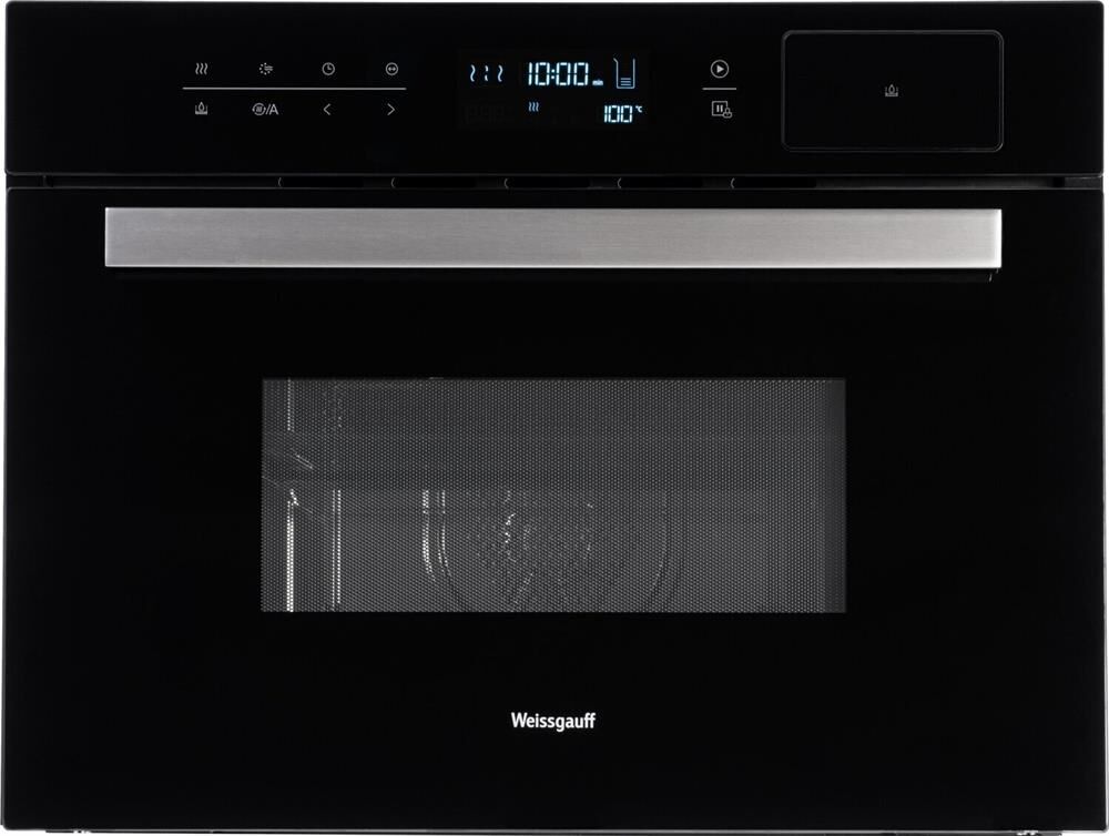 Тип духовки: электрическая. Тип управления: независимое. Переключатели: сенсорные. Мощность подключения: 3300. Объем духовки: 34. Максимальная температура: 230. Очистка духовки: очистка паром. Материал внутреннего покрытия духовки: эмаль легкой очистки. Вид таймера: электронный. Тип гриля: электрический. Мощность гриля: 1200. Мощность СВЧ: 900. Освещение духовки: есть. Многофункциональная духовка: да. Открывание дверцы: вниз. Длина кабеля: 1.5. Вес (нетто): 33. Габариты упаковки (ед) ДхШхВ: 0.7x0.67x0.58. Вес упаковки (ед): 41. Гарантия: 12 мес.. Размеры ниши для встраивания (ШхГхВ): 56 x 55 x 45 см. Размеры (ШхГхВ): 59.5 х 52.5 х 45.4 см. Цвет: черный. Режимы работы: СВЧ, гриль, конвекция, размораживание. Защита: защитное отключение, от детей. Функции: таймер, часы. Индикация: звуковая индикация, режима работы. Особенности конструкции: дисплей, утапливаемые переключатели. Переключатели: сенсорные. Духовка: электрическая, 34 л, эмаль легкой очистки, 3300 Вт. Размеры (ШxГxВ): 59.5 х 52.5 х 45.4 см; ниша 56 x 5