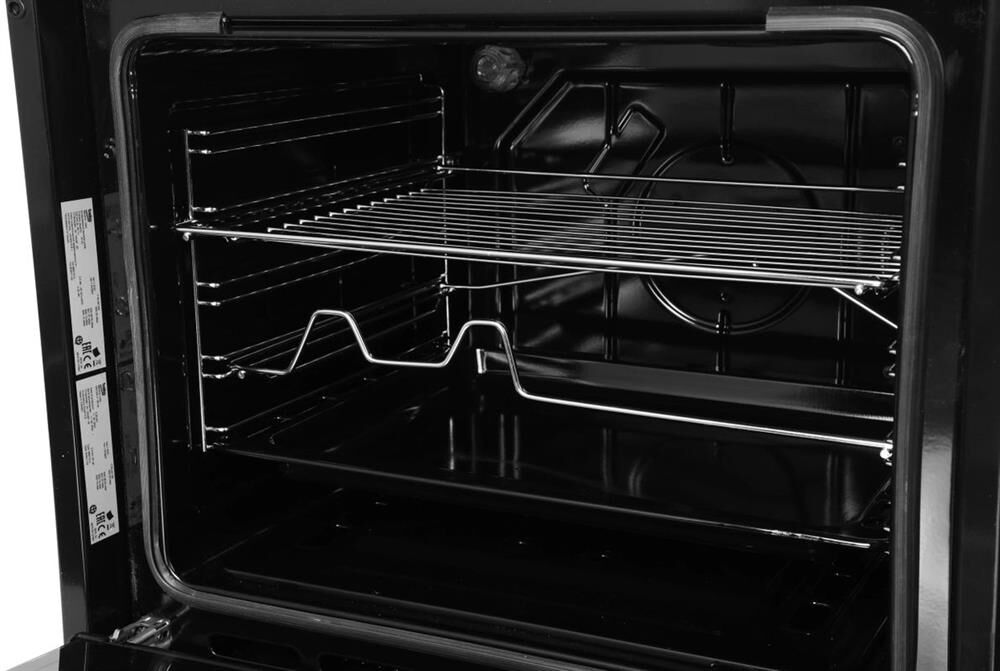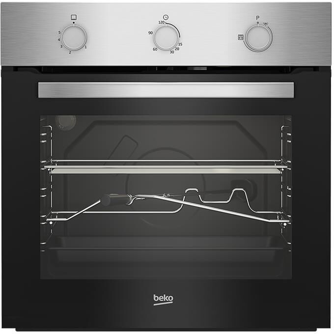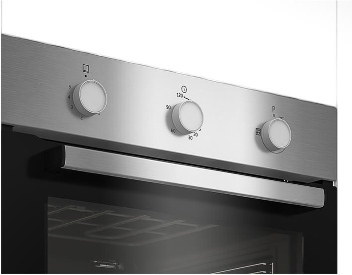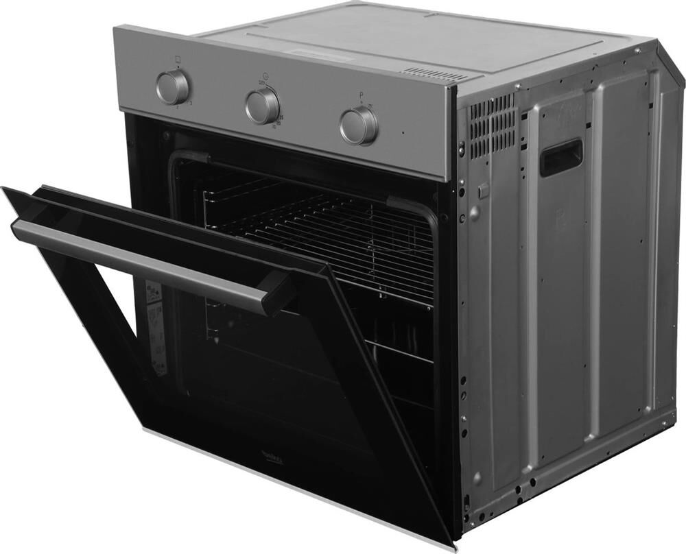 Размеры без упаковки (ВхШхГ), см - 59,5x59,4x56,7. Газовый духовой шкаф с откидным электрическим грилем; автоматический электроподжиг; поворотные переключатели; металлические направляющие; объем - 72л; 3 стекла дверцы; 1 решетка; 1 противень; вертел. Цвет: Нержавеющая сталь; Материал панели управления: Металл