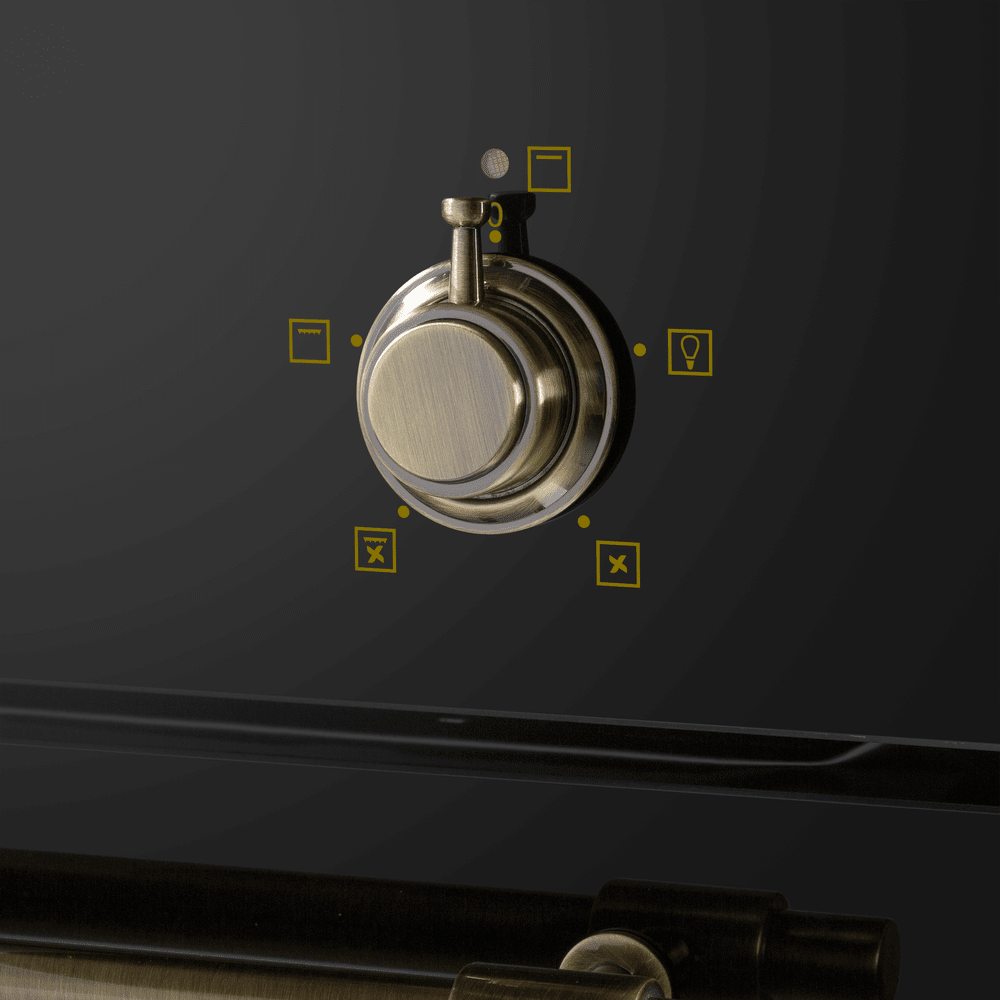 Духовой шкаф Maunfeld EOGC604RBG.MT идеально подойдет тем, кто любит стильный ретро-дизайн. Традиционное управление с помощью цельнометаллических поворотных переключателей делает эксплуатацию комфортной, а дополняет удобство автоматический электроподжиг, которым так же оснащена данная модель. Электронный гриль в паре с конвекцией обеспечат идеальное подрумянивание ваших блюд, а эмаль легкой очистки, которой покрыта внутренняя камера, позволит вам без усилий очистить духовку после готовки. Ключевые особенности: Стильный ретро-дизайн Автоматический электроподжиг Эмаль легкой очистки