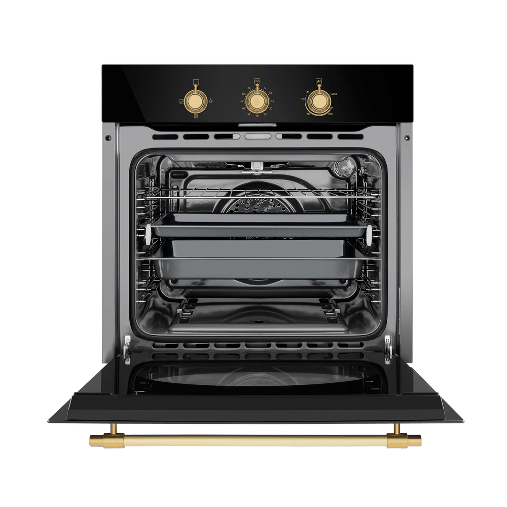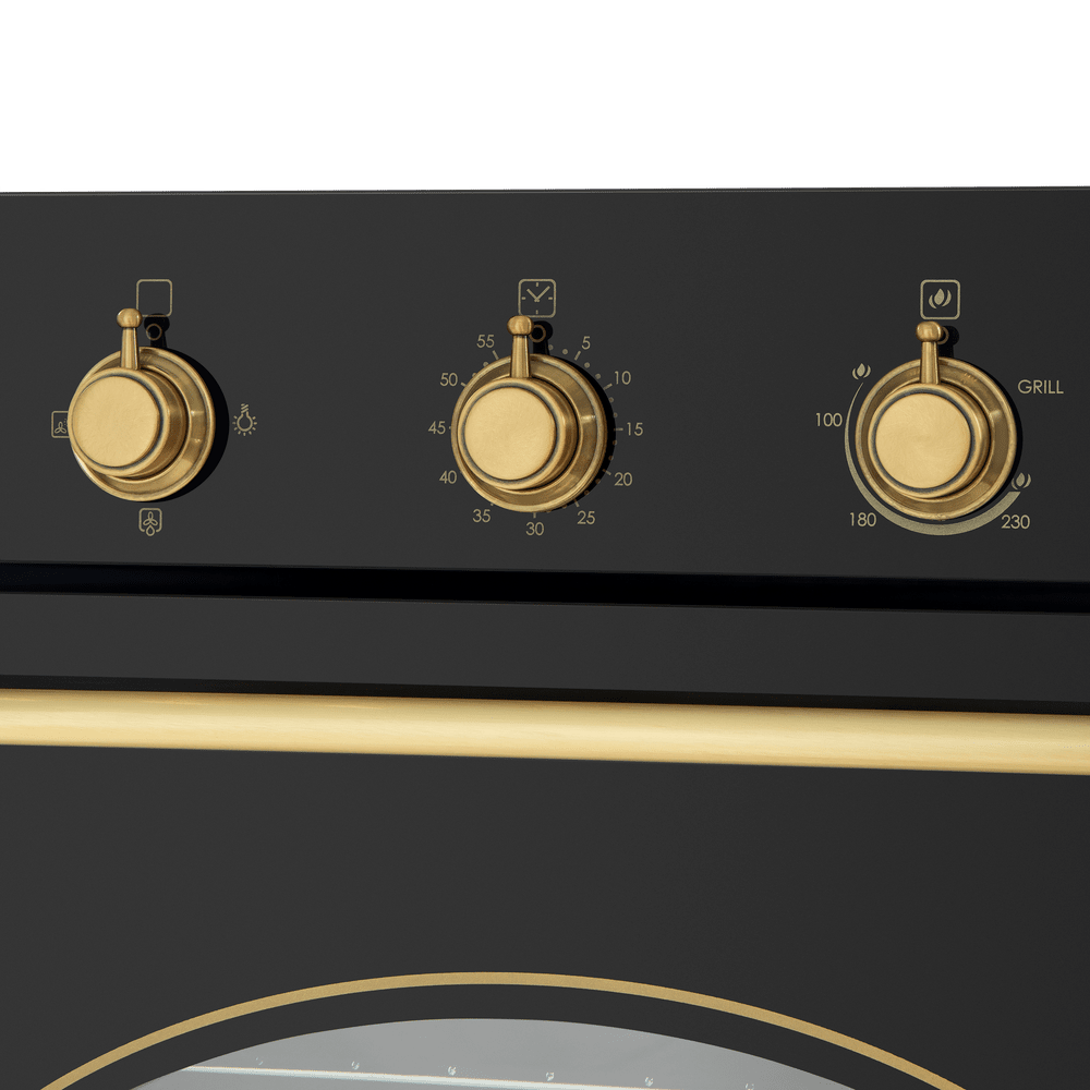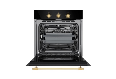 Maunfeld MGOGG.673RBG.TM — это газовый духовой шкаф с камерой объёмом 67 литров. Имеет четыре режима работы. Управление — механическое. Внутри нанесена эмаль лёгкой очистки. Дверца имеет три жаропрочных стекла, одно из которых съёмное. Направляющие — пятиуровневые хромированные. Есть таймер, электроподжиг и газ-контроль. Ключевые преимущества: Металлическая фурнитура под золото Работа на разных типах газа Тангенциальное охлаждение