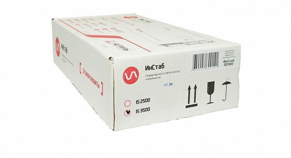Вес товара: 8. Выходная мощность (VA): 3500. Выходная мощность (Вт): 2750. Автоотключение при перегрузке: да. Автоотключение при перегреве: да. Защита от перегрузок: есть. Защита от короткого замыкания: да. Габариты упаковки (ед) ДхШхВ: 0.405x0.278x0.142. Вес упаковки (ед): 7. Страна производства: Российская Федерация. Гарантия: 24 мес.. Выходные розетки: Клеммная колодка. Размеры: 280x410x140 мм. Входное напряжение: 90 - 310 В. Выходное напряжение: 220 - 230 В. Выходное напряжение: 220 - 230 В. Выходные розетки: Клеммная колодка. Выходная мощность: 3500 ВA, 2750 Вт. Входное напряжение: 90 - 310 В