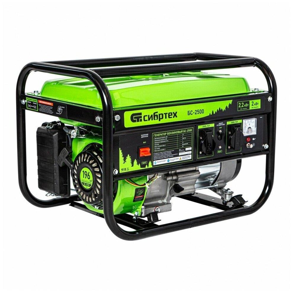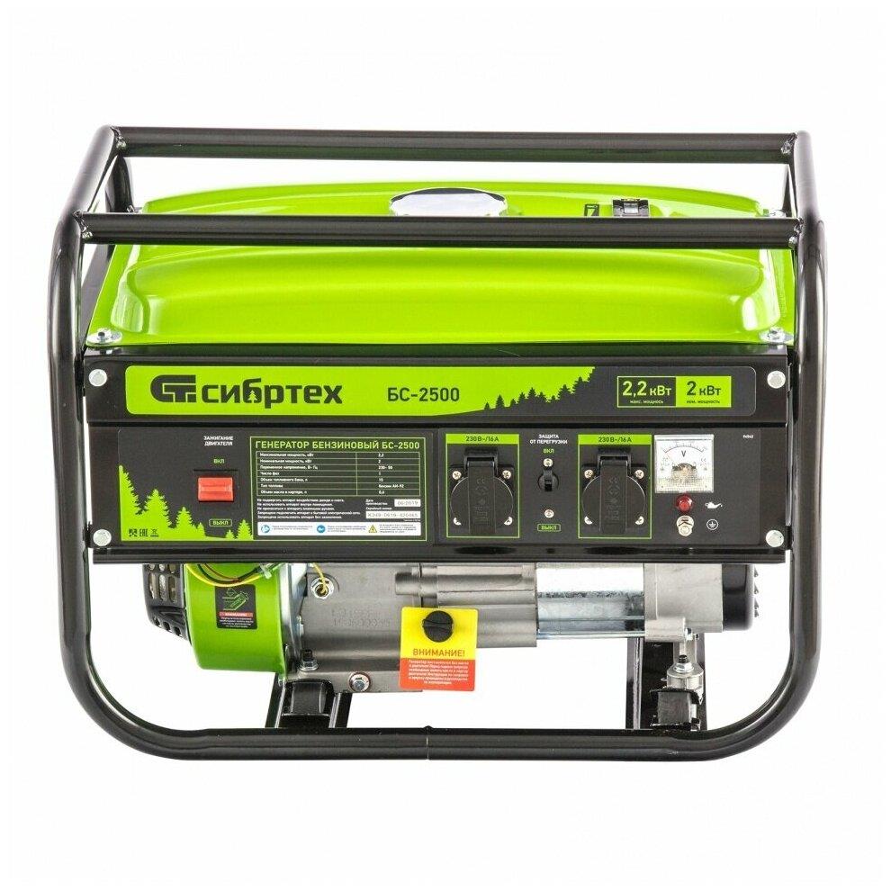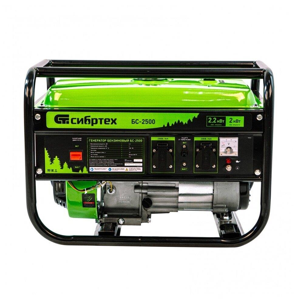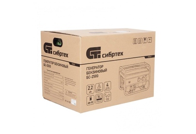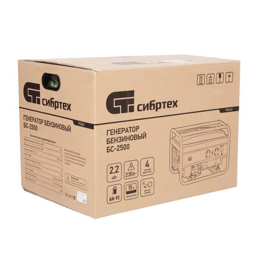 СИБРТЕХ Генератор бензиновый БС-2500, 2,2 кВт, 230В, 4-х такт., 15 л, ручной стартер 94542