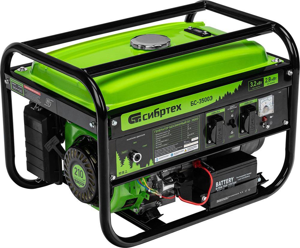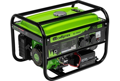 СИБРТЕХ Генератор бензиновый БС-3500Э, 3,2 кВт, 230В, 15 л, электростартер 94538