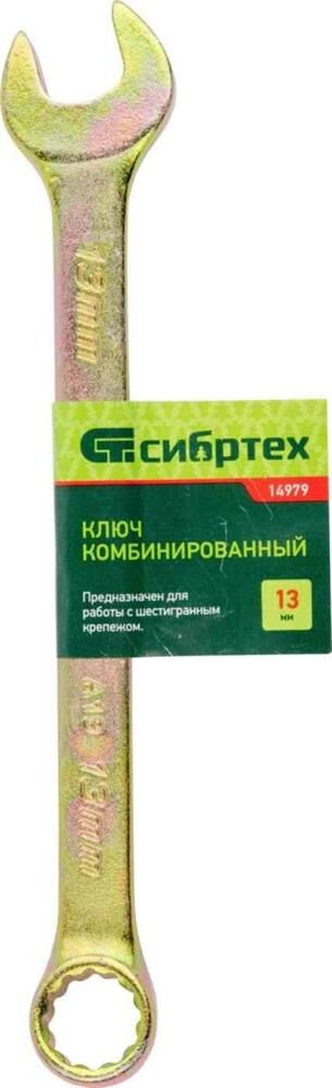 СИБРТЕХ Ключ комбинированный, 13 мм, желтый цинк 14979