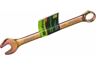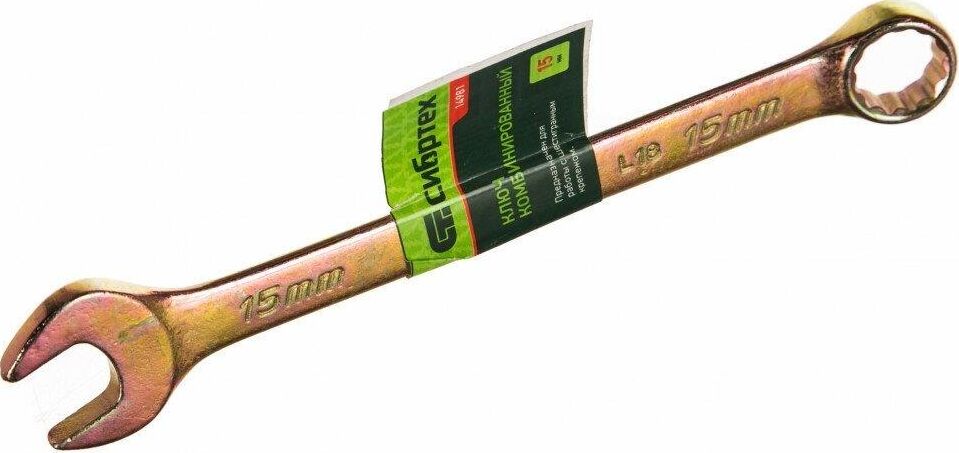 СИБРТЕХ Ключ комбинированный, 15 мм, желтый цинк 14981