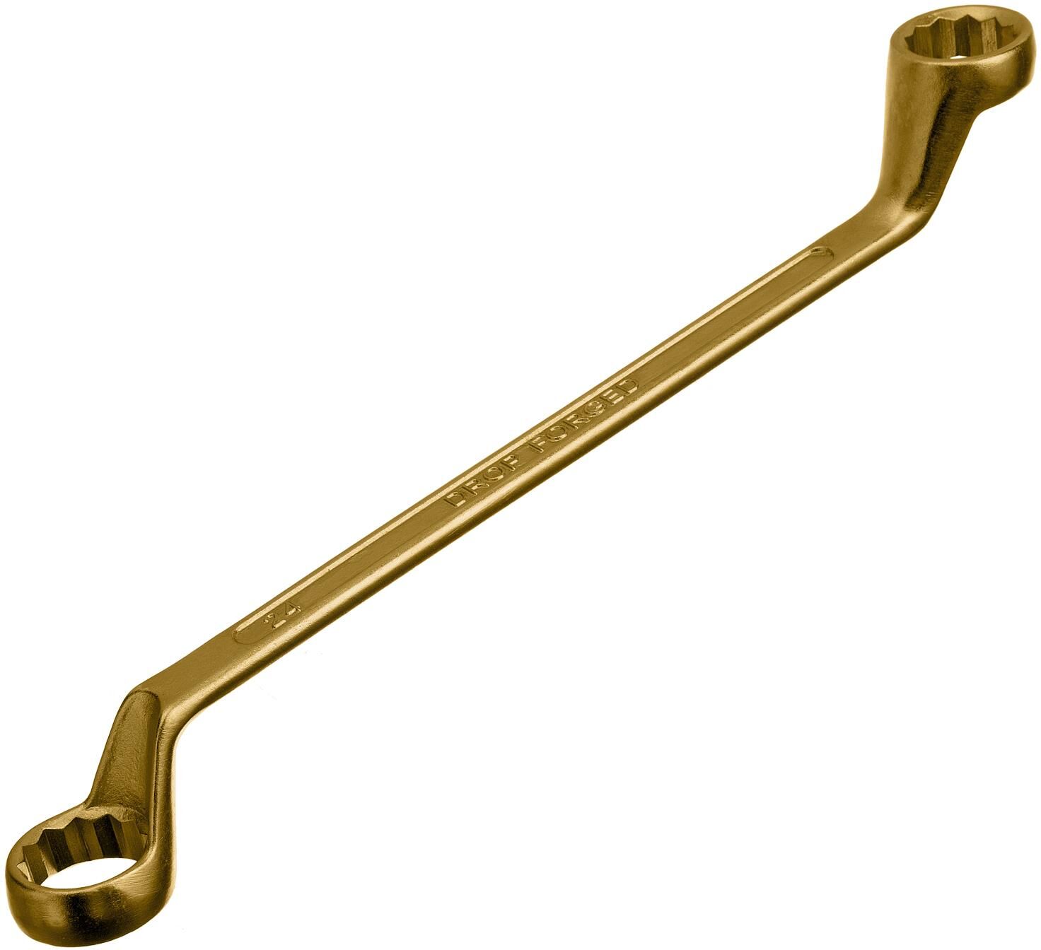 Накидной ключ Сибртех 14632 с покрытием из желтого цинка используется для монтажа и демонтажа резьбового крепежа с шестигранной головкой диаметром 22 и 24 мм. Пригодится для выполнения монтажных работ в гараже, на небольшом производстве и в быту. Кольцевой зев полностью захватывает шляпку крепежного элемента, поэтому ключом легко откручивать даже закисшие болты и гайки. Преимущества Прочность и долговечность — инструмент изготовлен из высококачественной углеродистой стали 45, твердость рабочих частей составляет 42 HRC, что соответствует требованиям ГОСТ (41-46 HRC). Устойчивость к воздействию влаги — желтое цинковое покрытие защищает от образования коррозии. Надежный захват крепежа — 12-гранный профиль каждого кольцевого зева имеет увеличенную площадь соприкосновения с головкой болта или гайки, что минимизирует риск повреждения ее граней. Продуманная конструкция — рабочие части смещены относительно плоскости рукоятки, что делает удобной работу в труднодоступных местах.