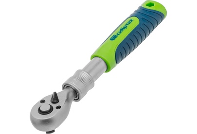 Ключ-трещотка 3/8″ Сибртех 14076 с телескопической рукояткой длиной 215-315 мм, храповым механизмом с 72 зубьями и функцией быстрого сброса, — инструмент для работы с резьбовым крепежом. Используется совместно с торцевыми головками, удлинителями, адаптерами. Телескопическая рукоятка упрощает работу с труднодоступным крепежом, а также позволяет увеличить прикладываемое усилие. Трещоточный механизм с 72 зубьями облегчает работу, угол поворота составляет 5°, что удобно в условиях ограниченного пространства. Инструмент пригодится в мастерской и гараже. Преимущества Удобная регулировка длины — предусмотрено 5 уровней фиксации рукоятки в диапазоне 215-315 мм. Прочность — инструмент изготовлен из закаленной хромованадиевой стали твердостью 49-55 HRC и выдерживает интенсивное использование без риска поломки. Защита от разрушения — хромовое покрытие предотвращает образование коррозии. Решение широкого спектра задач — механизм быстрого сброса упрощает и ускоряет замену насадок. Быстрый переход от монтажа к демонтажу —