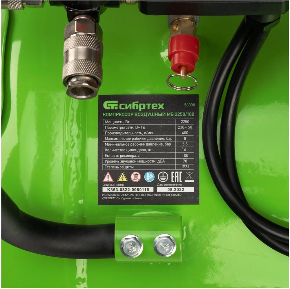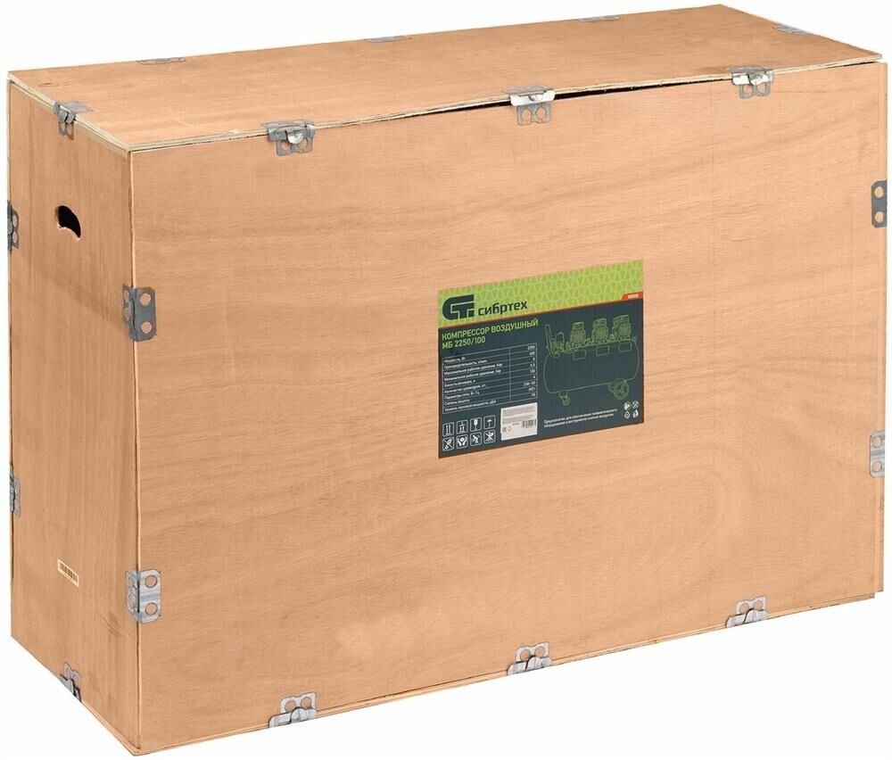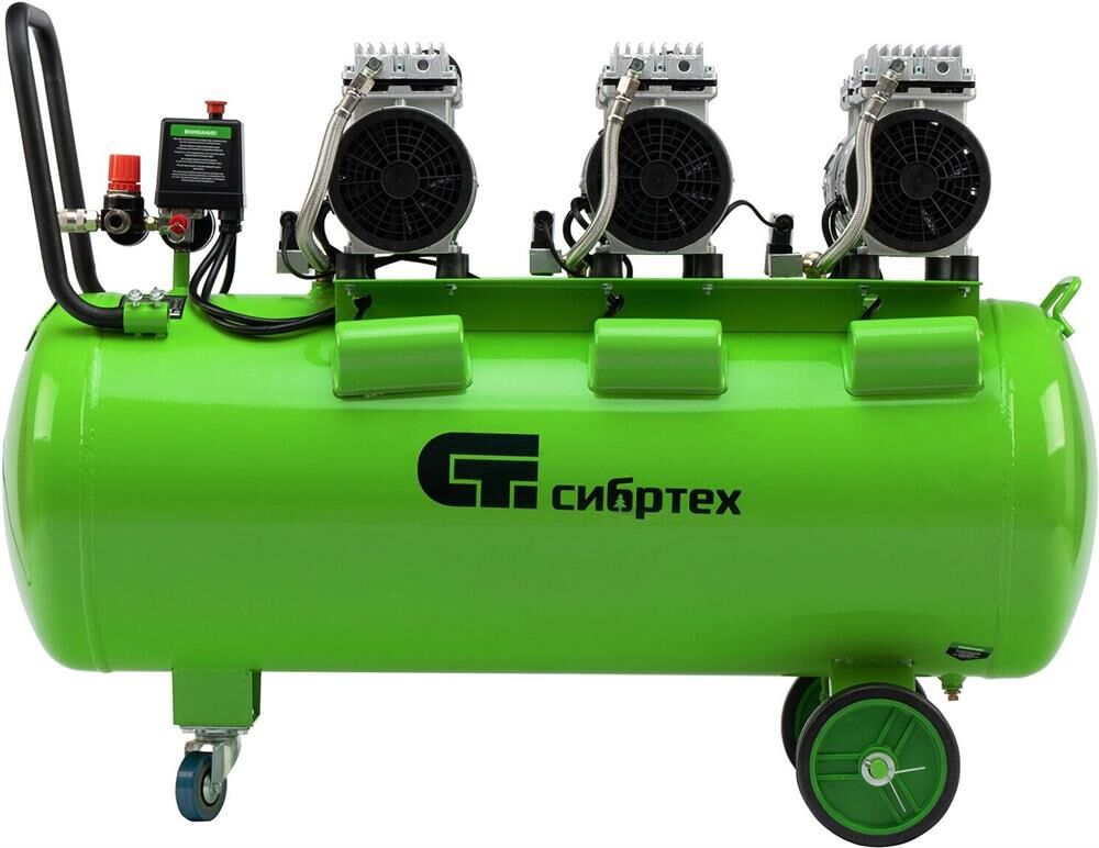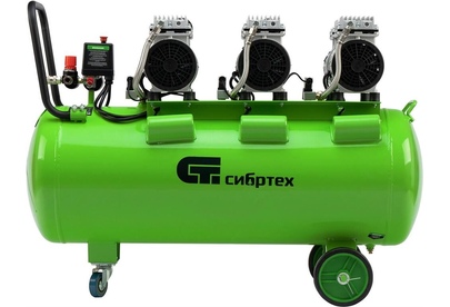 СИБРТЕХ Компрессор безмаслянный малошумный МБ 2250/100, 2250 Вт, 100л, 400 л/мин 58008