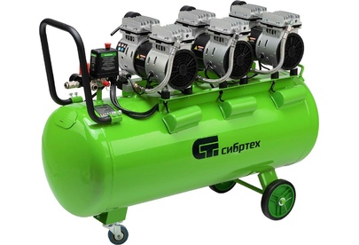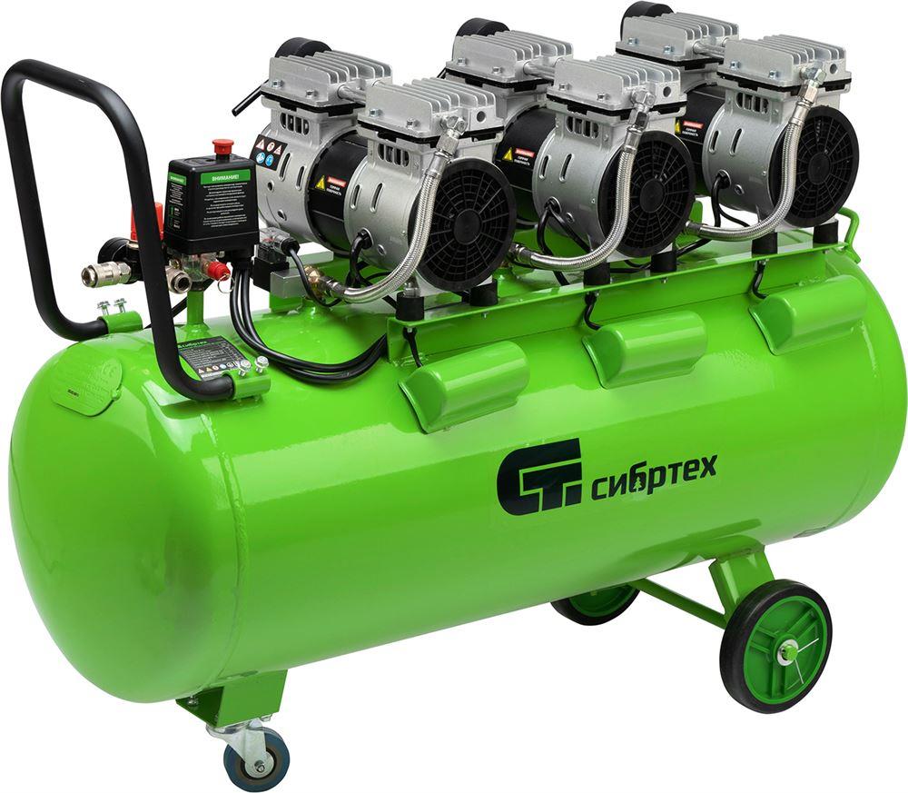 СИБРТЕХ Компрессор безмаслянный малошумный МБ 2250/100, 2250 Вт, 100л, 400 л/мин 58008