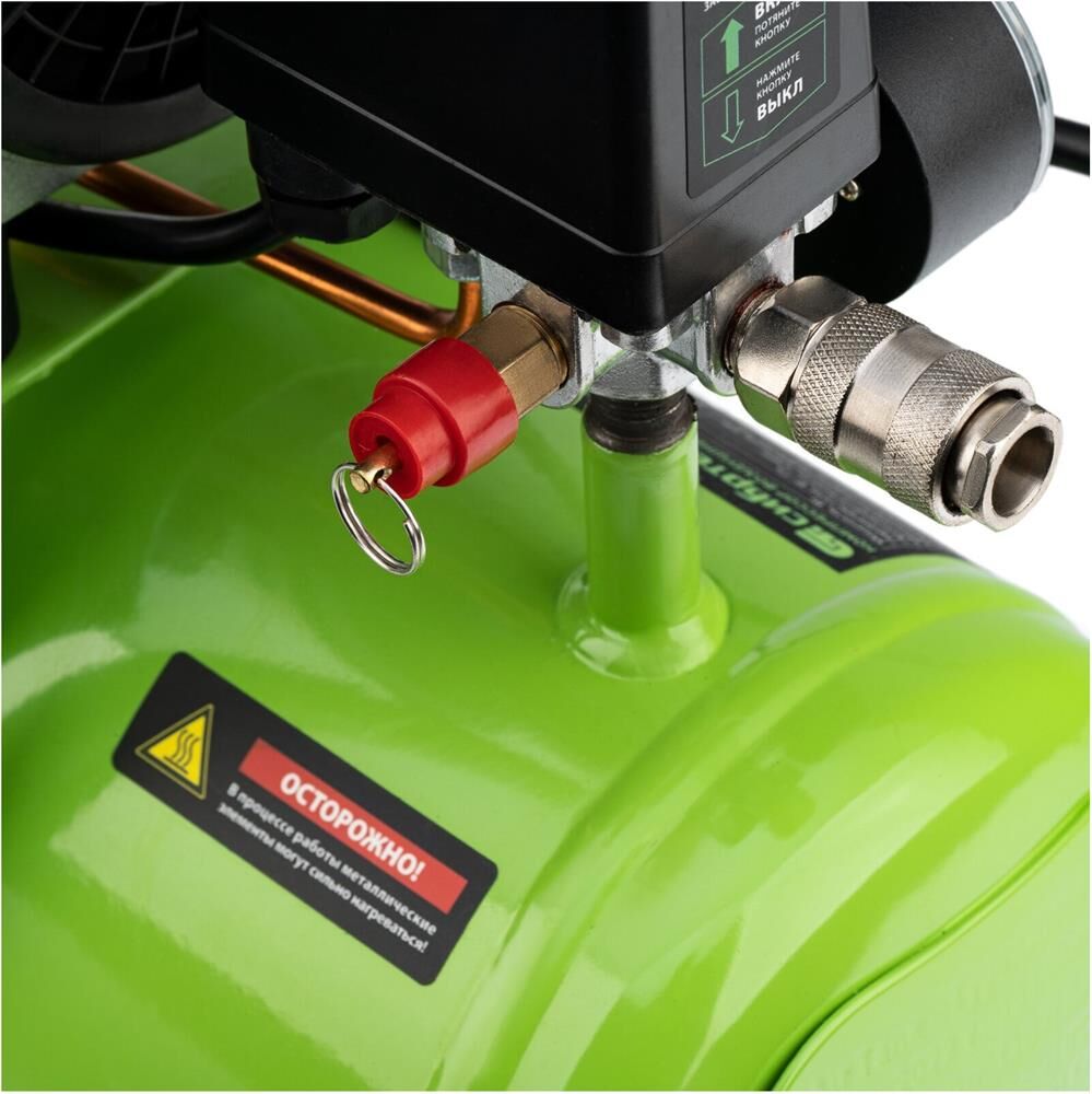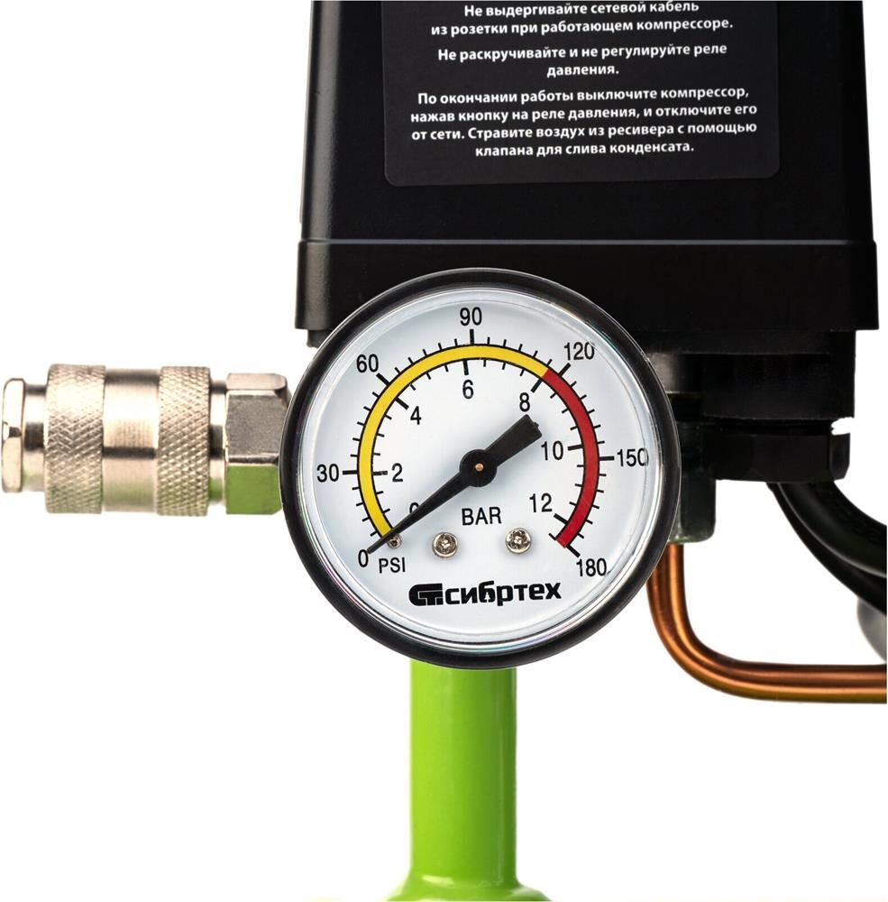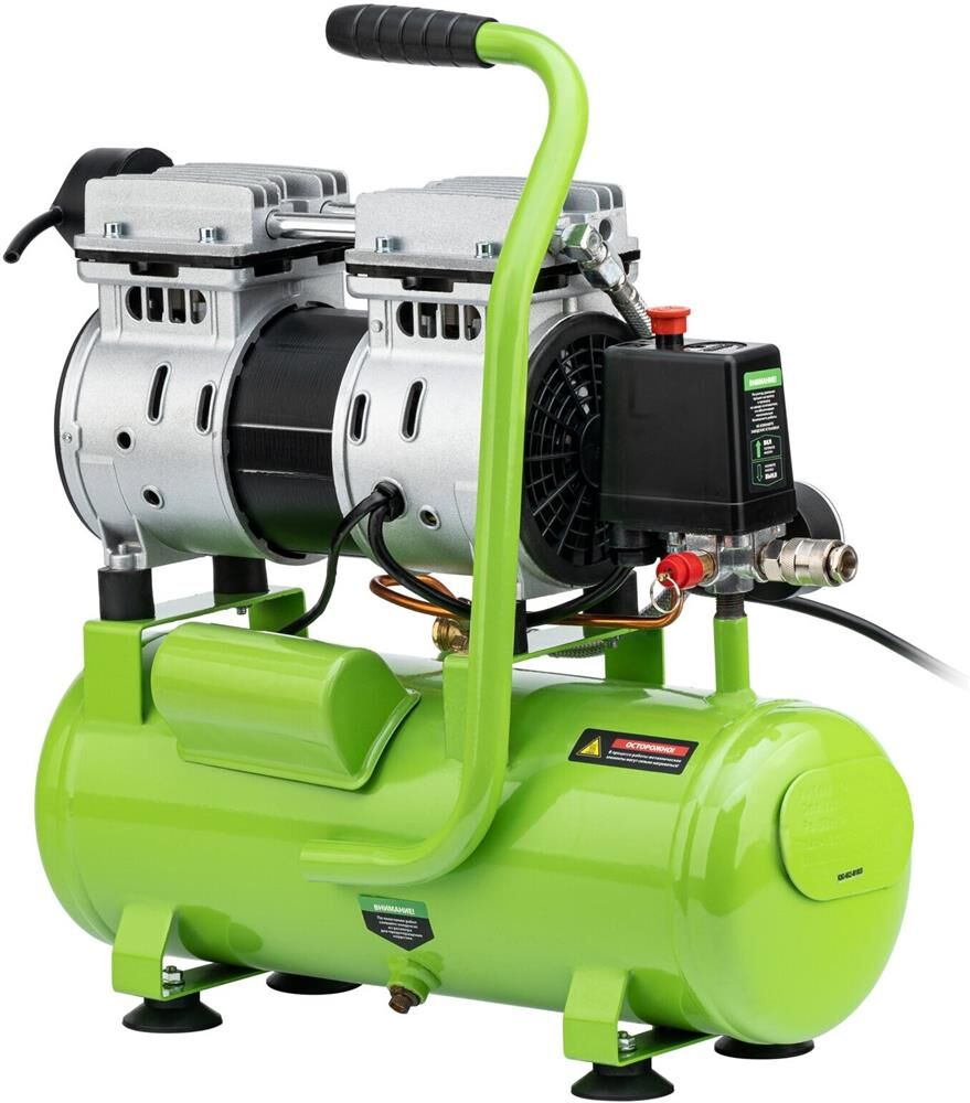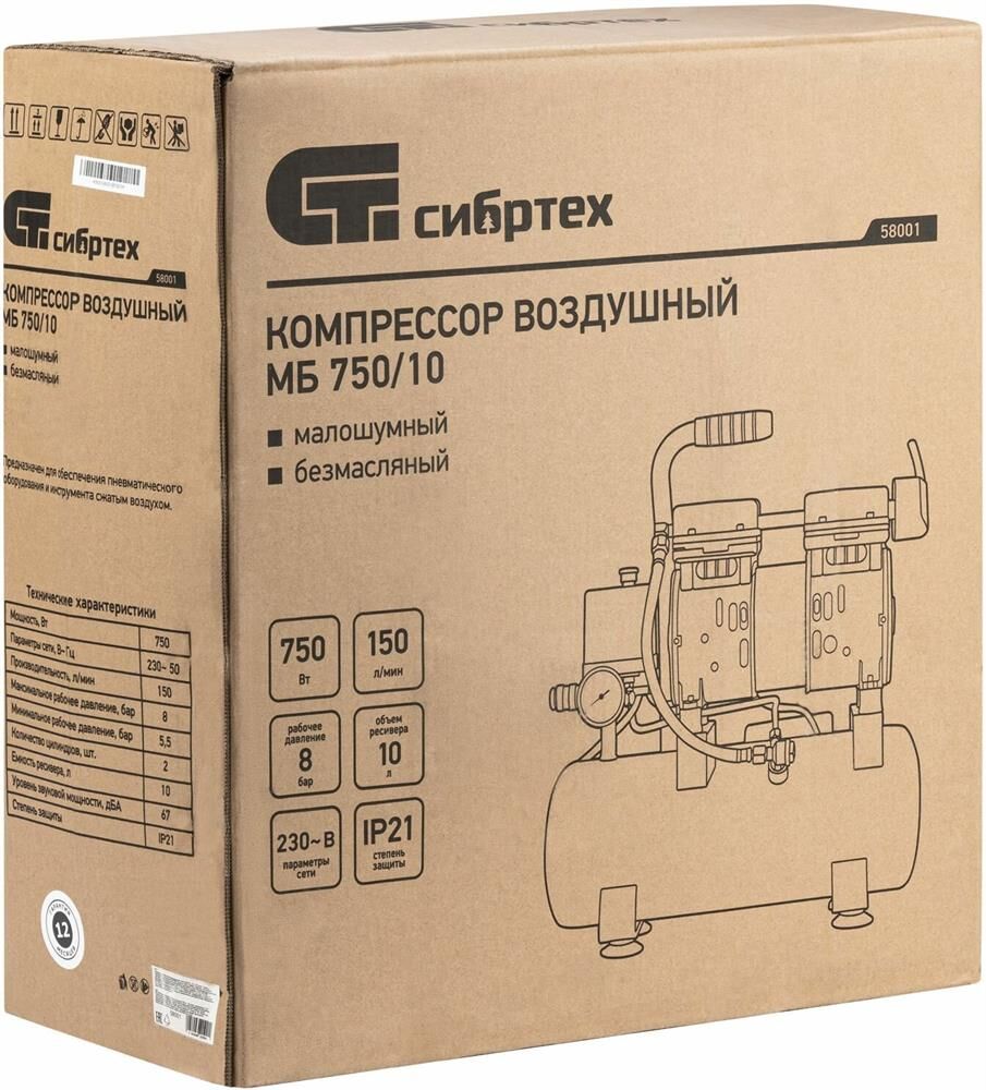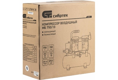 СИБРТЕХ Компрессор безмаслянный малошумный МБ 750/10,750 Вт, 10 л, 150 л/мин 58001