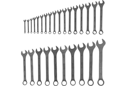 Набор комбинированных ключей Сибртех 15481 включает 27 инструментов из стали CrV, с фосфатированной поверхностью, соответствующих ГОСТ 16983, и предназначен для откручивания и закручивания крепежа размером 5,5-32 мм с 6-гранным или 12-гранным профилем головки. Внутренняя поверхность кольцевого зева с 12 гранями обеспечивает плотный контакт с головкой крепежа, что предотвращает деформацию ее граней. Ключи используются для слесарно-монтажных работ, будут полезны в строительстве, во время ремонта, а также пригодятся дома или в гараже.ПреимуществаВысокая прочность — инструменты изготовлены из хромованадиевой стали по технологии горячей ковки.Износостойкость — ключи прошли закалку и отпуск, твердость рабочих частей составляет 42-47 HRC.Защита от разрушения — поверхность инструментов фосфатирована для предотвращения образования коррозии.
