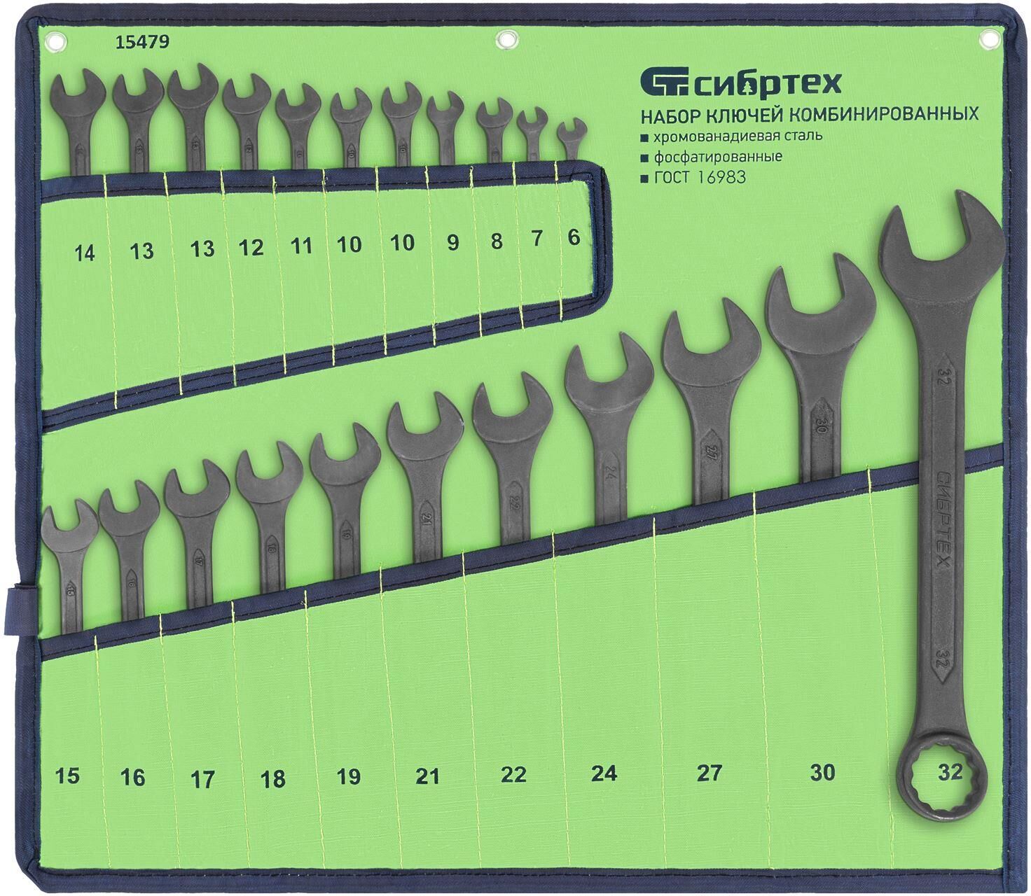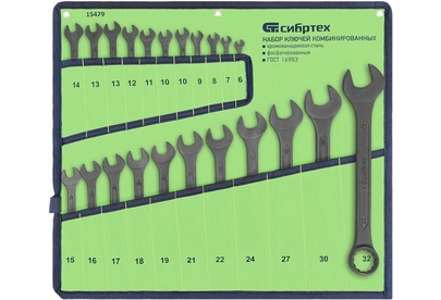 СИБРТЕХ Набор ключей комбинированных, 6 - 32 мм, 22 шт., CrV, фосфатированные 15479