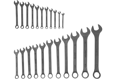 Набор комбинированных ключей Сибртех 15479 включает 22 инструмента из стали CrV, с фосфатированной поверхностью, соответствующих ГОСТ 16983, и предназначен для откручивания и закручивания крепежа размером 6-32 мм с 6-гранным или 12-гранным профилем головки. Внутренняя поверхность кольцевого зева с 12 гранями обеспечивает плотный контакт с головкой крепежа, что предотвращает деформацию ее граней. Ключи используются для слесарно-монтажных работ, будут полезны в строительстве, во время ремонта, а также пригодятся дома или в гараже.ПреимуществаВысокая прочность — инструменты изготовлены из хромованадиевой стали по технологии горячей ковки.Износостойкость — ключи прошли закалку и отпуск, твердость рабочих частей составляет 42-47 HRC.Защита от разрушения — поверхность инструментов фосфатирована для предотвращения образования коррозии.
