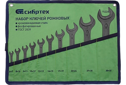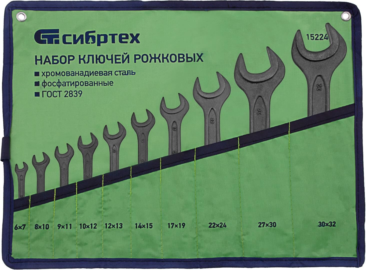 СИБРТЕХ Набор ключей рожковых, 6 - 32 мм, 10 шт., CrV, фосфатированные 15224