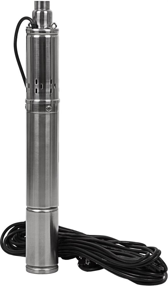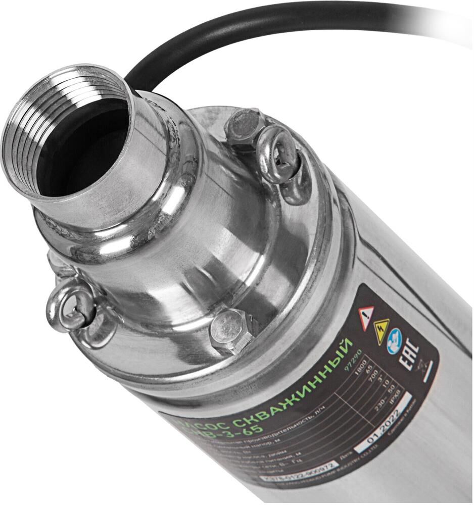 Скважинный винтовой насос Сибртех СНВ-3-65 97290 мощностью 700 Вт, диаметром 3", обеспечивает напор до 65 м и способен перекачивать 1800 литров жидкости в час. Предназначен для подъема чистой воды из скважин и колодцев глубиной до 80 м. Насос позволяет организовать систему водоснабжения и полива на даче, садовом участке или в загородном доме.ПреимуществаТермозащита — в случае перегрева двигатель автоматически отключается, что предотвращает его поломку.Высокий ресурс — двигатель полностью заполнен маслом, что уменьшает трение движущихся частей, а также улучшает теплоотвод.Защита от утечки масла — производитель предусмотрел мембрану компенсации теплового расширения.Отсутствие загрязнений в воде — система верхнего забора предотвращает захват песка и илистых отложений со дна.Безопасность — трехжильный кабель с проводом заземления защищает пользователя от поражения электрическим током.Степень защиты IPX8 — корпус насоса полностью непроницаем для воды, электронные компоненты надежно защищены.Безопасное погружение —