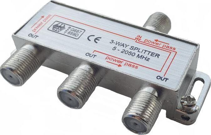 Используется для разделения телевизионного сигнала на несколько частей. Количество выходов:3шт; Частота сигнала:5-2050MHz; Материал:металл