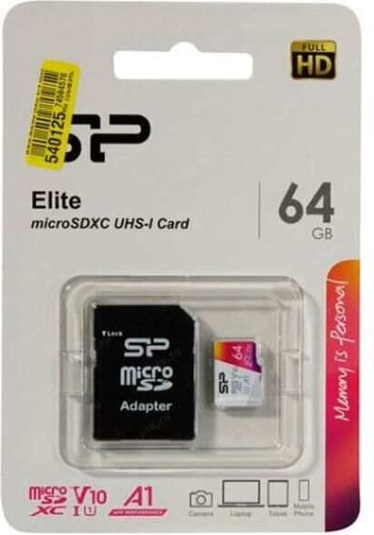 SILICON POWER Флеш карта microSDXC 64GB SP064GBSTXBV1V20SP Elite + adapter