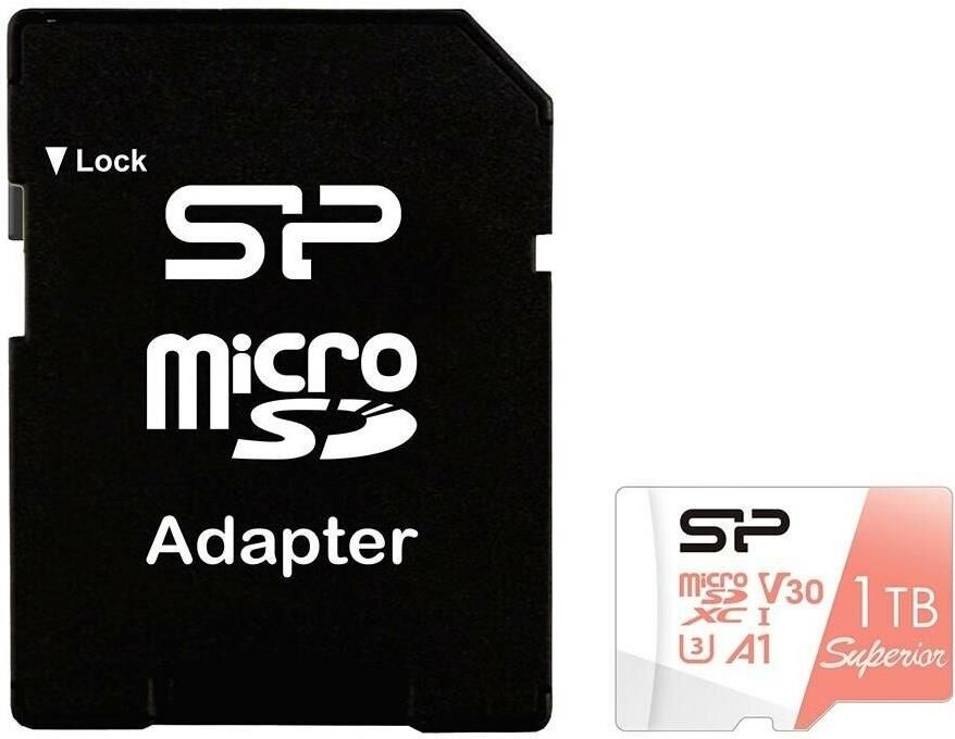 SILICON POWER Карта памяти microSDXC UHS-I U3 Superior 1024 ГБ, 100 МБ/с, Class 10, SP001TBSTXDV3V20