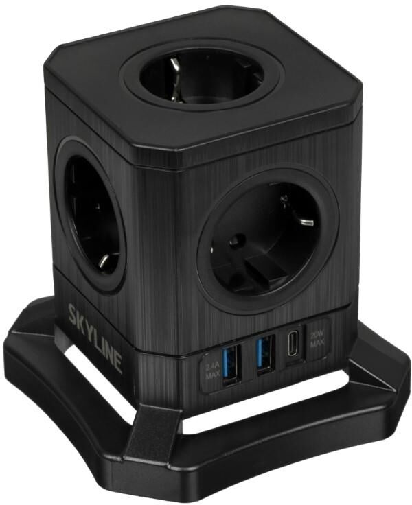 Сетевой фильтр с 2xUSB+1xType-C портами; Розетки 5 шт.; Длина кабеля 3 метра; Цвет черный; Максимальная мощность 4000W (16A); 2xUSB, 1xType-C (Максимальная суммарная сила тока: 3 А), поддержка QC/PD; Защитные шторки, Защита от перегрузки и короткого замыкания; Стильный лаконичный дизайн; Огнеупорный пластик; Питание AC 220-250V 50Hz.
