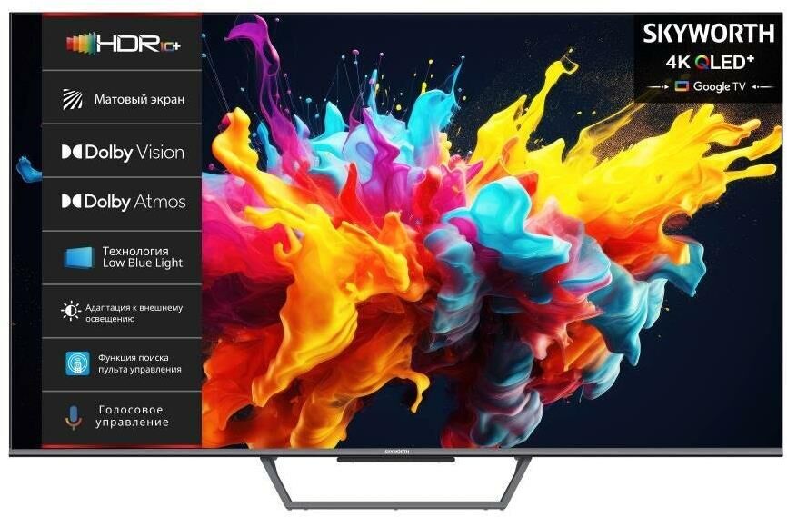 SKYWORTH 75" Телевизор 75Q67G QLED, 4K Ultra HD, черный, СМАРТ ТВ, Google TV