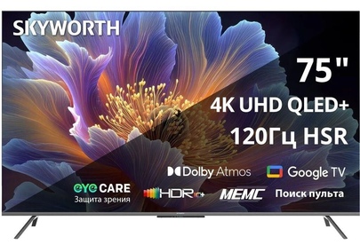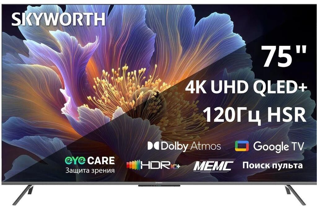 SKYWORTH Телевизор QLED 75" 75Q66H Eye Care Frameless черный 4K Ultra HD 120Hz MEMC DVB-T DVB-T2 DVB