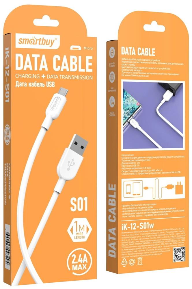 SMARTBUY (iK-12-S01w) S01 MicroUSB белый, 2.4А, 1 м